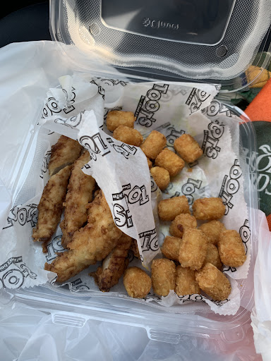 I ordered a 6 piece chicken basket with tots, an extra side of tots, and an order of the fried avocado bites. My cousin ordered a chicken sandwich, no cheese, and fries. One kid ordered mac and cheese with fries, and the other a chicken strip kids' meal.
