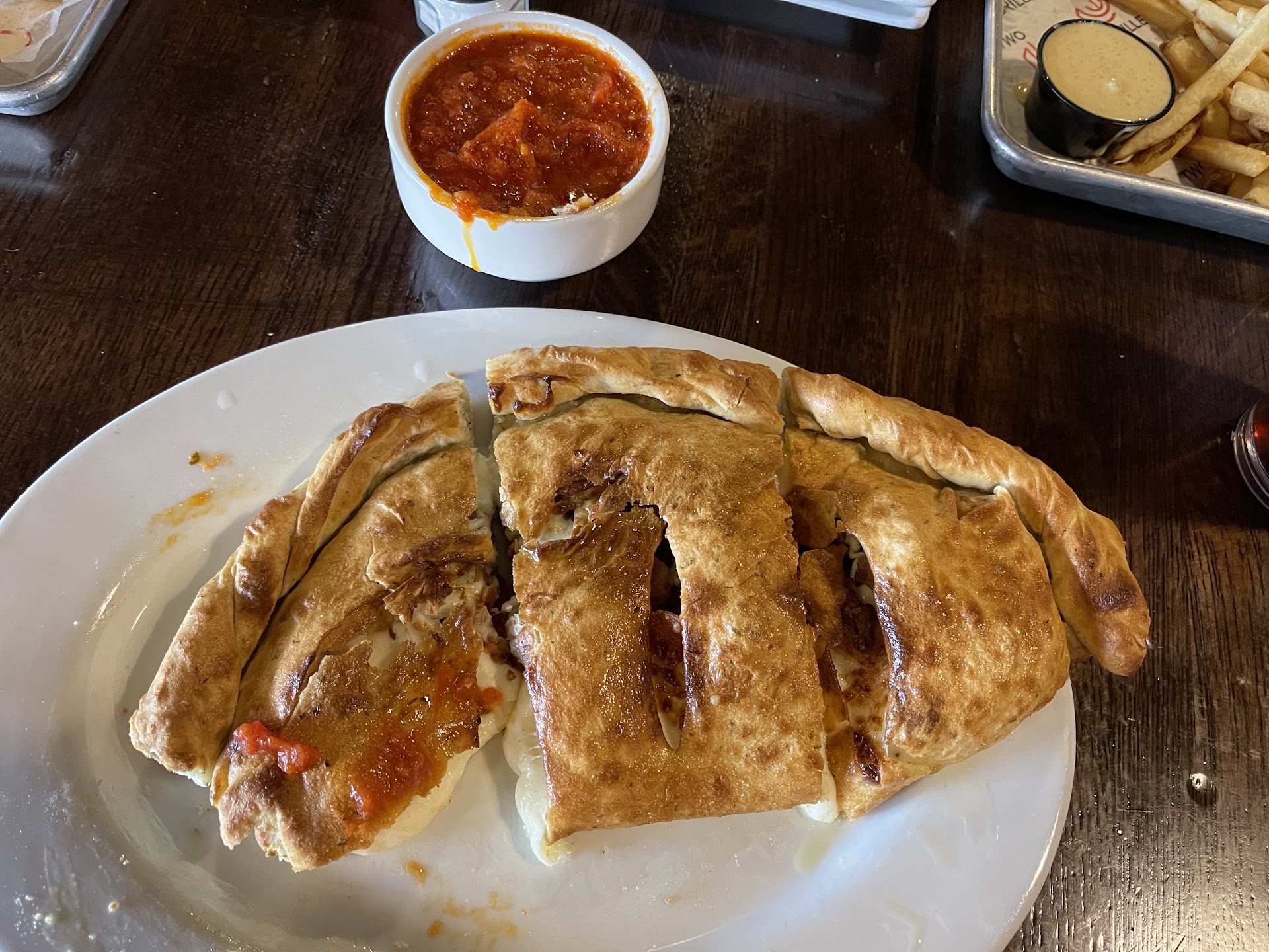 The recommendation from the waitress when asked she said the house calzone was better than the chicken. (Hate to see what the chicken is like)