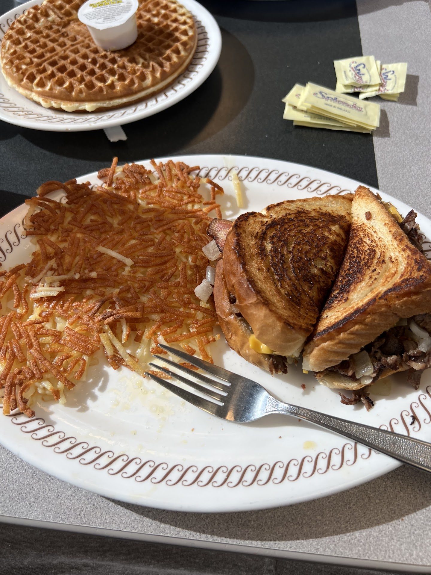 Read more02/12/2023 We decided to go to our local Waffle House for Brunch. Our normal Waffle House on Old Fort Parkway in Murfreesboro was full so we ventured across the interstate on Old Fort to the Waffle House 1/2 mile away which is the Armory Rd location. Upon arrival we seated ourselves and our server “Miyah” (spelling) approached us and took our order. I order the Cheesesteak and hash browns. The hash browns were to be “chunked” (ham chunks) and “peppered” (jalapeño slices). My wife had the “all star” and the kids had a waffle and a grilled cheese. The food arrived within 15 minutes and was prepared very well except for the ham and peppers being left out of my hash browns. After bringing us our food we never were visited by our server again…no drink refills…no how’s everything tasting…nothing. I ordered unsweetened tea and had to go to the counter to get my own sweetener! 10 minutes after we finished our meal our server showed up with the check. I walked to the cash register to pay and requested a “to go box” for a waffle. The most frustrating part of this story is that there were 7 employees counting the cook and only 3 tables of diners, and I couldn’t even get a drink refill! Busy or not I think I’ll stick with the Old Fort location in the future. This was the first time in 34 years of eating at a Waffle House that I’ve didn’t leave a tip. A “refill” and a simple “who’s the food” would’ve sufficed. HORRIBLE SERVICE!!!...