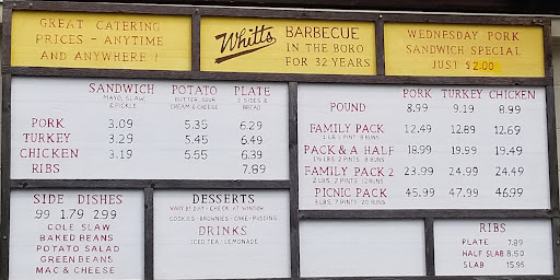 Read moreWe ordered catering for our wedding this past Saturday from whitts. We ordered enough pulled pork, pulled chicken, buns, green beans, Mac and cheese and baked beans for all of our guest. BUT they never delivered the buns! Who does that for a wedding? This was very unprofessional. Then they offered to bring them after our guest had ate bbq with NO BREAD. Also not to mention that they sat some of our food on the GROUND. I do not recommend this place at all for an event. Very disappointing, did not get compensated for the mishap only refunded the dollar amount for the buns. This was embarrassing not only to my husband and I but to our...