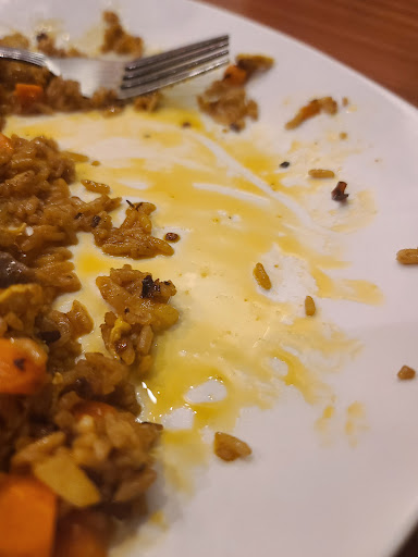The fried rice came out within minutes of us ordering and immediately looked unappealing and tasted awful. There was grease all over the plate, and the rice was overcooked and tasted old along with the pork.