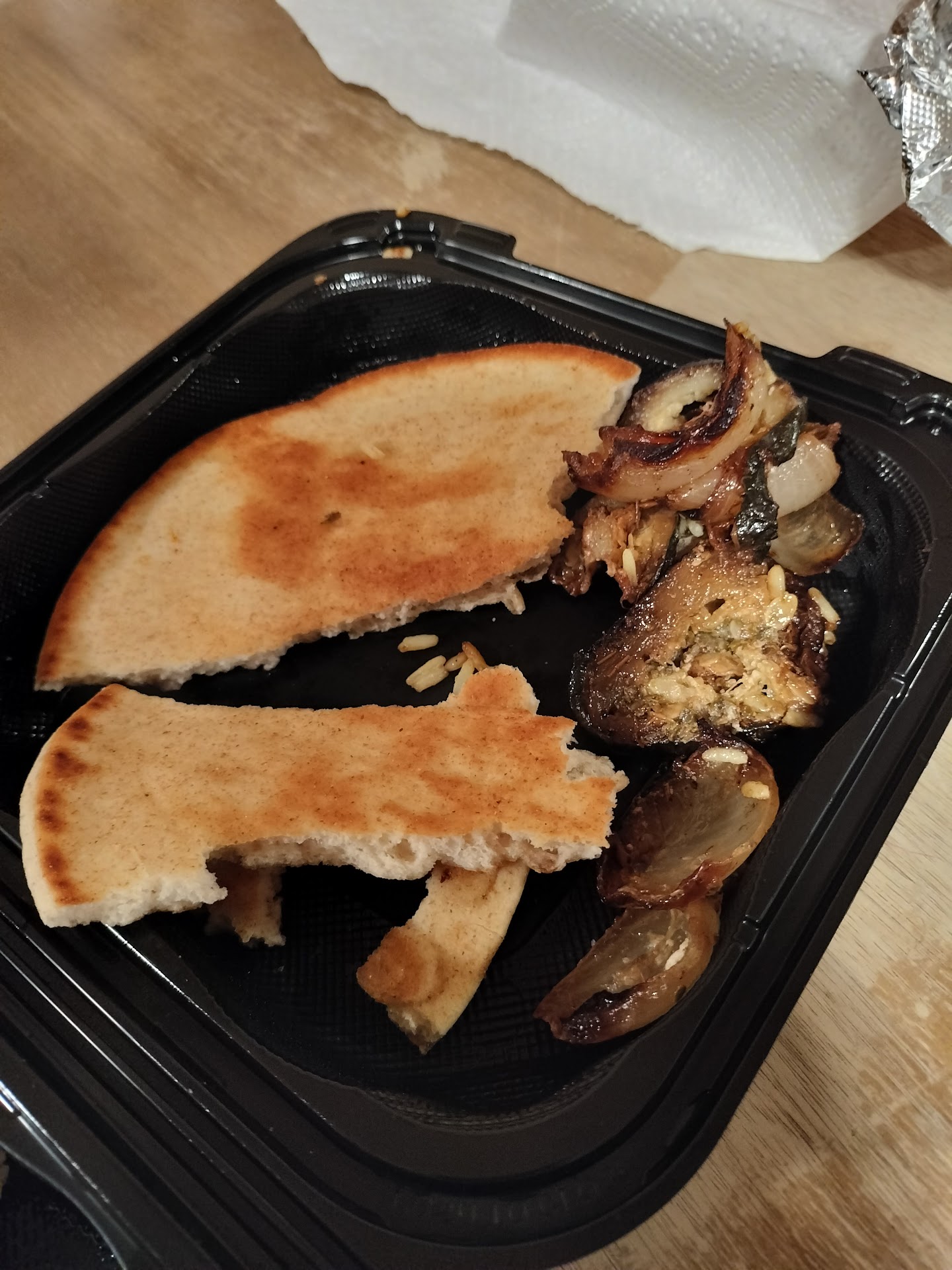 I felt very comfortable with what to expect: tasty pita, seasoned meat, an ocean of thick bland fries. I was not let down on any of those. When I picked it up, I forgot to ask for fry sauce, and as I was contemplating the depressing notion of all those hot bland fries, I discovered the secret hidden sauces at the bottom of my bag! Instead of putting the little containers on top to then tip over and make a mess, they were cleverly placed under the take out box along with the extra tzatziki sauce I had asked for. I'm still so happy about it! Thank you for taking care of my sauce needs! I'll definitely order...