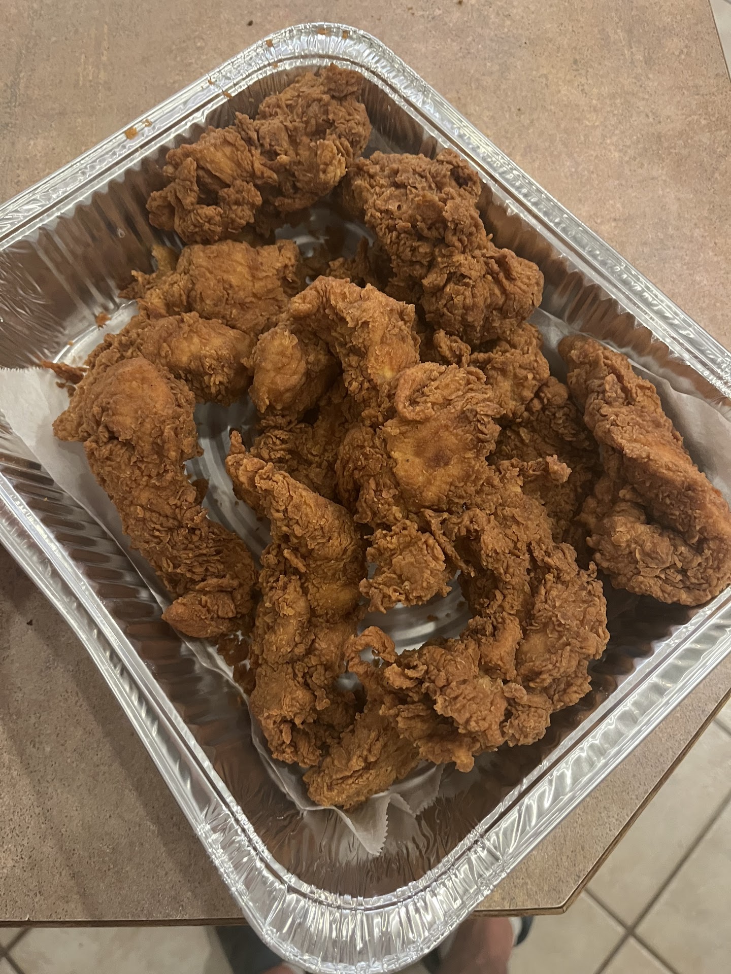 so iām hard pressed to even leave a 3 start review after tonightās experience ⦠i usually will all ways recommend this place to everyone i come across. iāve been here multiple times over the last 5 yrs!! and itās always beeen awesome! and more often then not iām usually always getn the 20 piece tenders and 2 large fries to go.. but tonight i went there and got the same thing as always the 20 piece and fryās.. but i got totally screwed on my order of 20 tenders.. every single tender was absolutely way over done and was way more crispy and dry then anything iv ever had before from this place!!! i just spent almost $50 on tenders and it all was so over done that no one wanted to eat more then first couple ones they had.