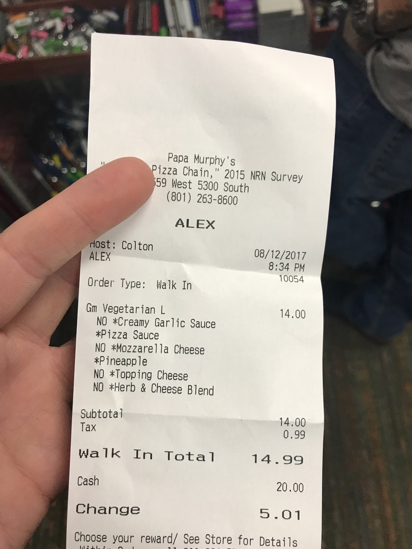 Read moreI walked into Papa Murphy’s, not expecting much. It’s a pizza place, right? You grab your pie, go home, bake it, and call it a day. But no. This location? Different. I hadn’t even opened my mouth when the crew looked at me with a knowing smile and handed me my pizza—before I even ordered. It was like they tapped into some cosmic pizza intuition. I thought it was just a fun coincidence, but little did I know, I was about to have an experience that would alter the course of my existence.