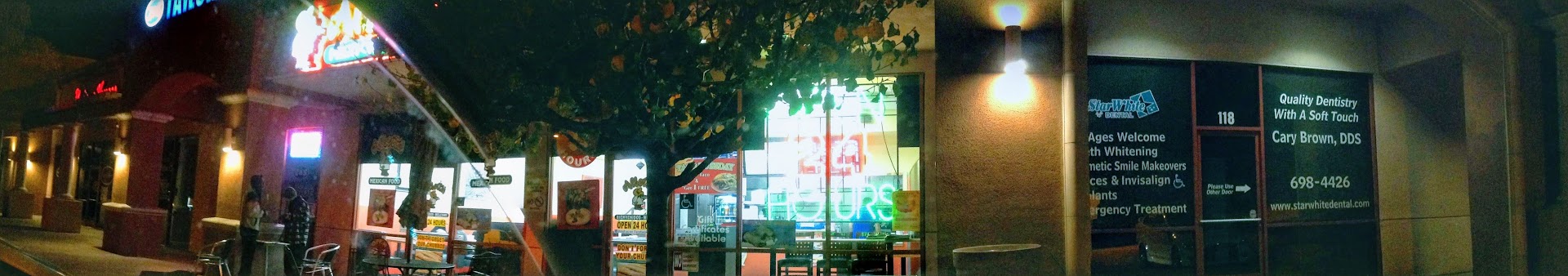 Restaurant is clean and modern. Colors are appealing. Inside looks much more inviting than the outside. * I must note! -- I went at 4am and once I was inside, I felt fine; the outside, however, was not a place I could feel safe in if I was alone. (Again, I can only say from my experience going at 4am - other hours could be completely different).
