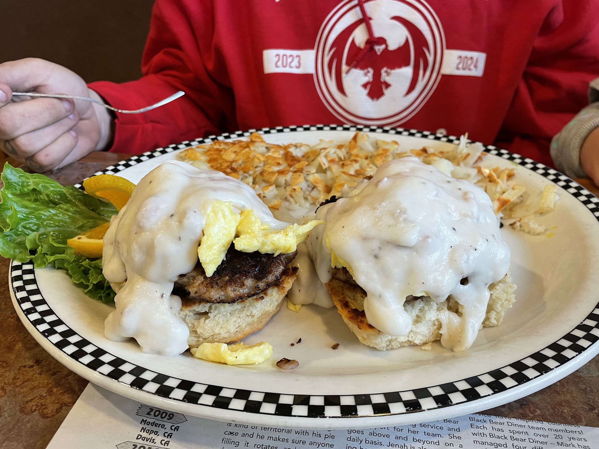 Food/kitchen: A sandwich was ordered with Dijon, and it was smothered in yellow mustard. Their recipe even calls for it. A cheeseburger was ordered and served with NO CHEESE. Taken back to the kitchen and returned to the table unmelted. Strawberries were ordered for a child with whip cream and sprinkles, confirmed by waitress, and served plain. A sandwich with chicken had chicken on 1 half plus a few bits on the other half but the rest was lettuce and onion. These are pretty basic parts of both kitchen and wait staff to ensure customer satisfaction. If they cant do this much, on more than 1 occasion, then management is the problem. Its not only about how nice the employees are but that the customer, when paying so much for the entrees, should get what they order the first time. There is a bit of false advertising going on as well. The original owners on the menu have a statement that their customers are shocked by how large the portions are. That has never once been the truth at any visit. Standard to slightly less than average. Not horrible but just average. We have firmly decided NOT to go back to Black Bear Diner for a while. They are not quite meeting the challenge for full service at the moment.We believe the restaurant needs a thorough deep cleaning top to bottom, including the kitchen. The kitchen manager needs to be evaluated along w the staff for accuracy, freshness, and cleanliness, and time it takes to complete and order to served at the table, esp since some food is clearly NOT as hot as it should be. Enough red flags have come up for us to believe that without retraining and or the allowance of a careless service atmosphere will eventually cause further problems all around that with proper care now...