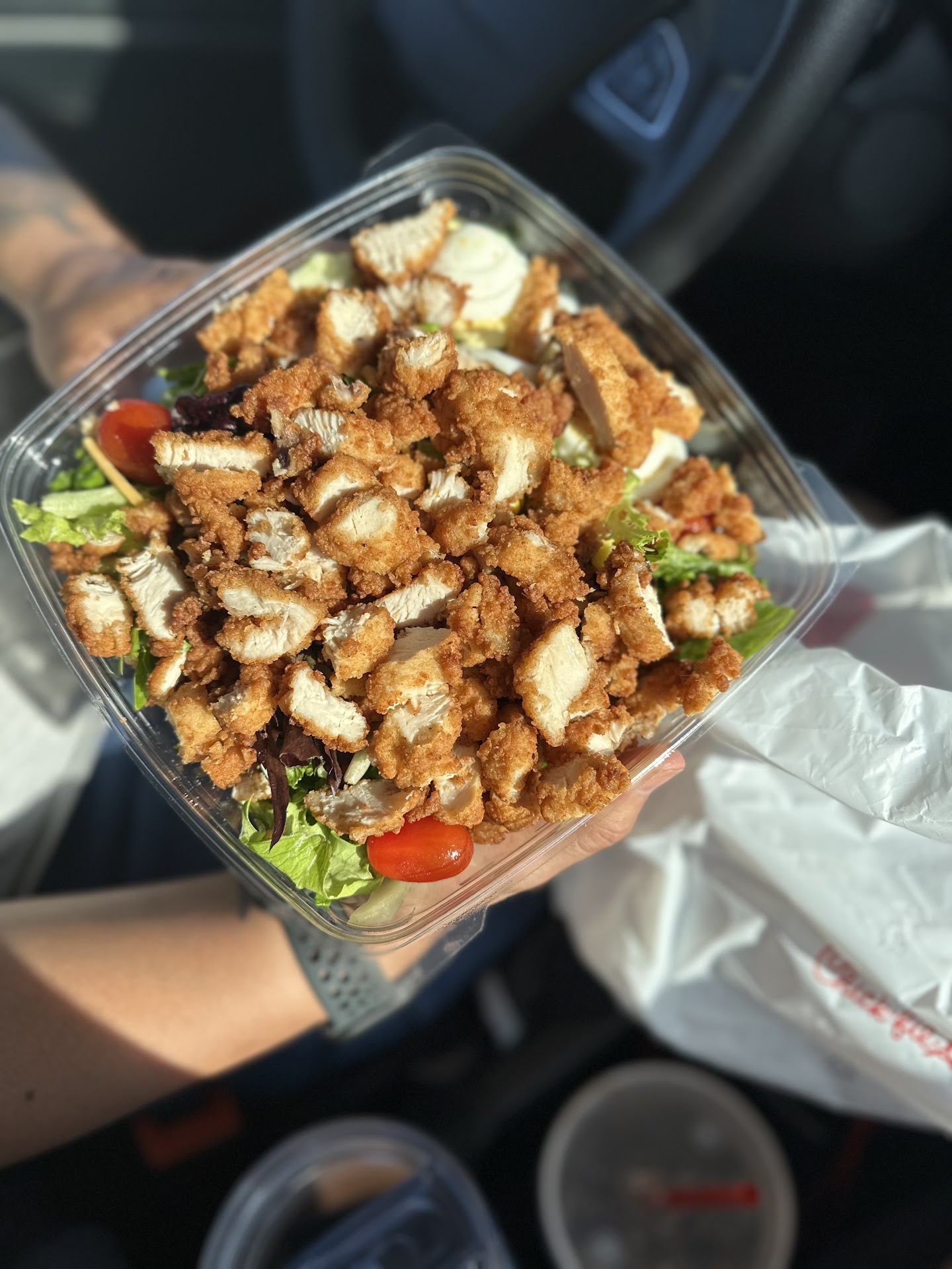 Read moreI recently visited the Chicken Fillet store in Murrieta with my boyfriend, hoping to enjoy a delicious spicy chicken salad. However, our experience was far from satisfactory. We placed an order for two salads and a limonite at 4:02 pm, and despite the place being empty with no other customers in the drive-through, we had to wait until 4:28 pm to receive our order.