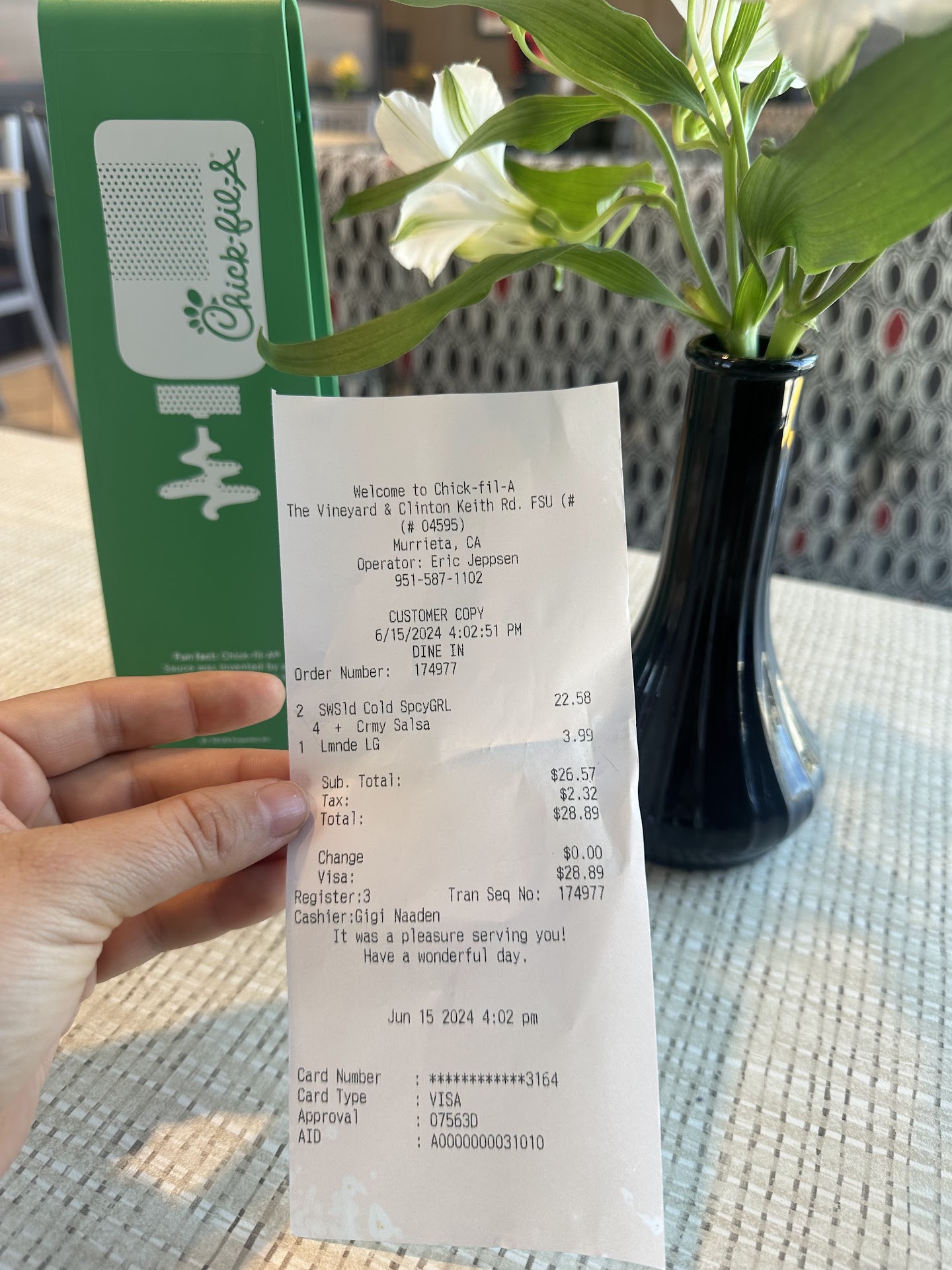 Look our family LOVES Chick-Fil-A, we always get GREAT customer service. The lady who took our order in the long red jacket, BEST customer service we had today (was SUPER sweet) but here’s our complication and concerns: