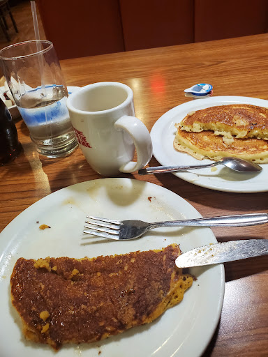 I finished volunteer work late so came in on Monday around 1120pm to get a bite and some coffee before my hour plus long drive home. Super friendly staff but this was just not their night. They asked me about seating and directed me to a booth and then forgot about me until I went to the counter about 12 min later. Then they still took almost five more minutes to take my drink and order. Once my order (water, coffee & pumpkin pancakes - they were out of oreo shakes)was taken, it took about 8 min to get my water and coffee. They forgot to bring me the creamer I asked for and also didn't leave me with any silverware to stir the coffee or napkins. A different person came about 6 min later with some half and half so I asked them for the silverware. After then, it still took another fifteen min to get my order which was buttermilk pancakes. But I ordered pumpkin pancakes. Go figure. I let them know right away. Seven min later I got the correct pumpkin pancakes. Never did get all the creamer I asked for but they did come check on me later so I just settled with what I had. The pumpkin pancakes weren't even that good. Go figure again. I won't be ordering those from Dennys again. The buttermilk are far much better. When I got my check, I was already here for almost 1.5 hours, just for coffee and pancakes. Wow... They said they are charging me only for the buttermilk pancakes and coffee, since the back messed up the order, so they took $2.79 off my tab for the boatload of service flaws. Remember what I mentioned in the beginning? The staff was super friendly so I didn't say anything. I did her another lady complaining as well. The main problem is there is only ONE wait staff and one manager, who was the other person checking on me. Dennys needs to keep at least two wait staff on site so that one downcast get overwhelmed which is what I believe happened tonight. I'm leaning here almost 1am for such a small order. Not...