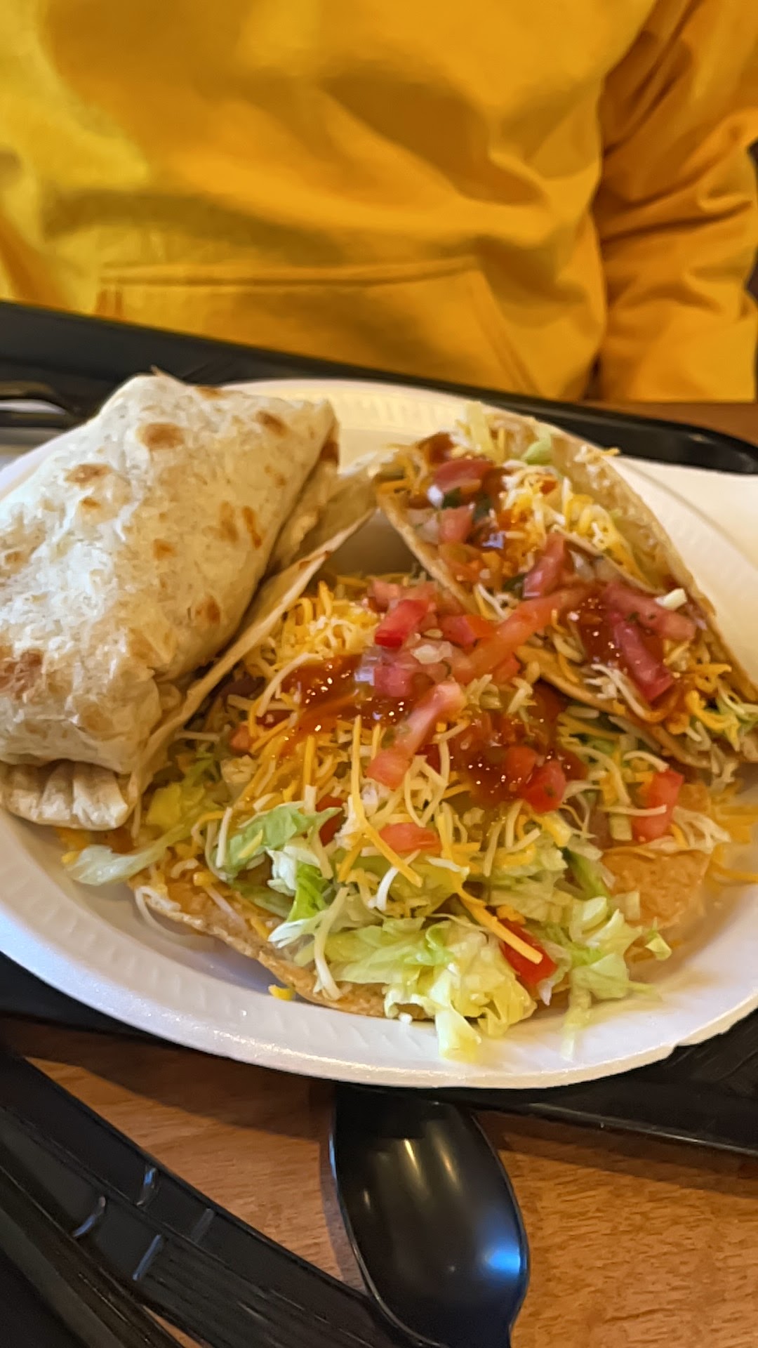 I love this taco shop. I had a shredded beef taco, flauta and a bean and cheese burrito, my boyfriend had a bean tostada, combination burrito and a shredded beef taco. Both meals came with drinks, at do it yourself fountain. . The plates were $11.99. I liked the salsa bar too. They had around 6 different sauces.I like red and hot, he likes green. The menu looked delicious. We decided on this lunch special for the$11.99.The food was really good. The refried beans were so delicious in my burrito. My taco looks really red in my tacos compared to my boyfriend’s because I put a lot of red hot sauce inside of it. 😋