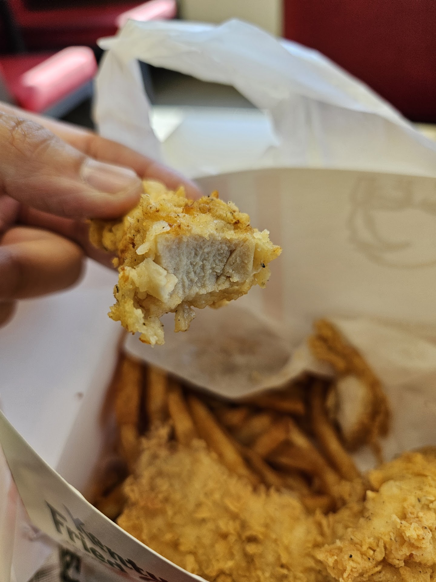 I don't eat fast food often but since i was away from home I partook on this American tradition lol. Maybe it's been forever since I've been to KFC but was surprised they now offer spicy chicken! It's the little things for me really. Food was fine... the reason I am giving them only 3 stars is because as a fast food chain, I'd expect a well established supply management. They ran out of forks and/or spoons (maybe they carry sporks)... which is really mind blowing. There was no heads up about this either. An hour from home, how exactly was I to enjoy my food? I returned because the forks were missing and the guy at the counter shuffled around looking for some, a solid 20 minutes had passed since I'd gone through the drive threw and he wasn't immediately aware? That's odd, so poor supply management AND communication. Eek. I'm sure things like this happen however this is a major red flag for me. Maybe it's my Lean Six Sigma Black Belt talking however lol. Just bummed me and my kids had to come home to cold...