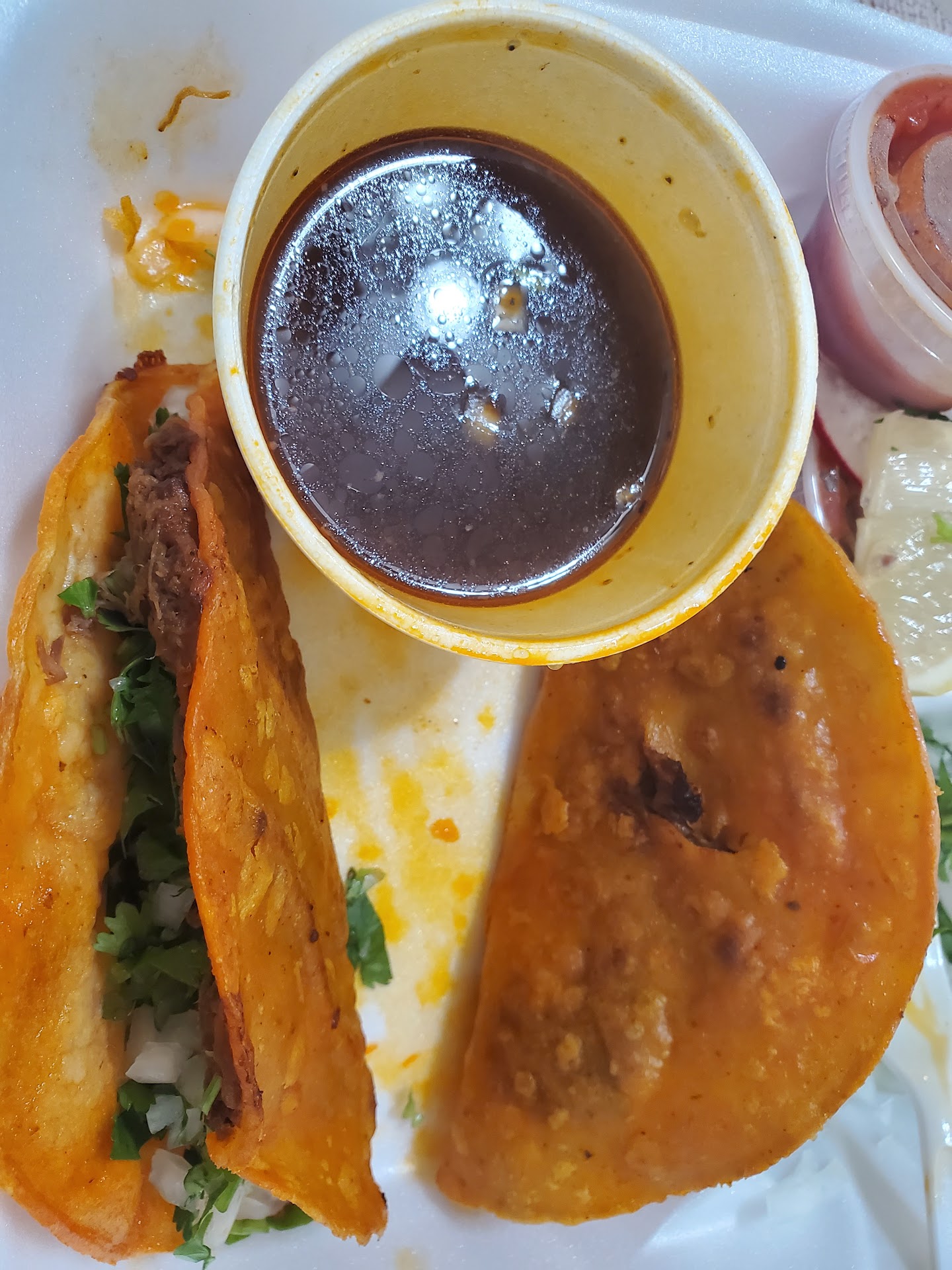 I'm kind of surprised I'm giving this the review I am, but definitely a two-star experience. We came in and we had one of our party want to go next door to get a sandwich so the first issue they had when we told them was that there was no other food allowed in the restaurant, so we asked if we give you outside and they said yes. We were about to move and then she came comes back and says oh we can just put it on one of our plates, so I don't really know what the difference is, but it just made this weird little ordeal for nothing. Then, the food came out. My 19 year old daughter said it tasted like something my wife would make at home and while my wife's a good cook, that's not a compliment when it comes to Mexican food. She's not a Mexican food person and even she said that there's just no real flavor to it. The Birria literally had no taste. It just looked like oil water. The soft shell taco shells were what appeared to be store-bought and not even fully cooked on my 6-year-olds plate which they refused to cook a hard shell even though they have hard shell tacos. Just overall a middling experience and the food wasn't that great so I can't recommend it...