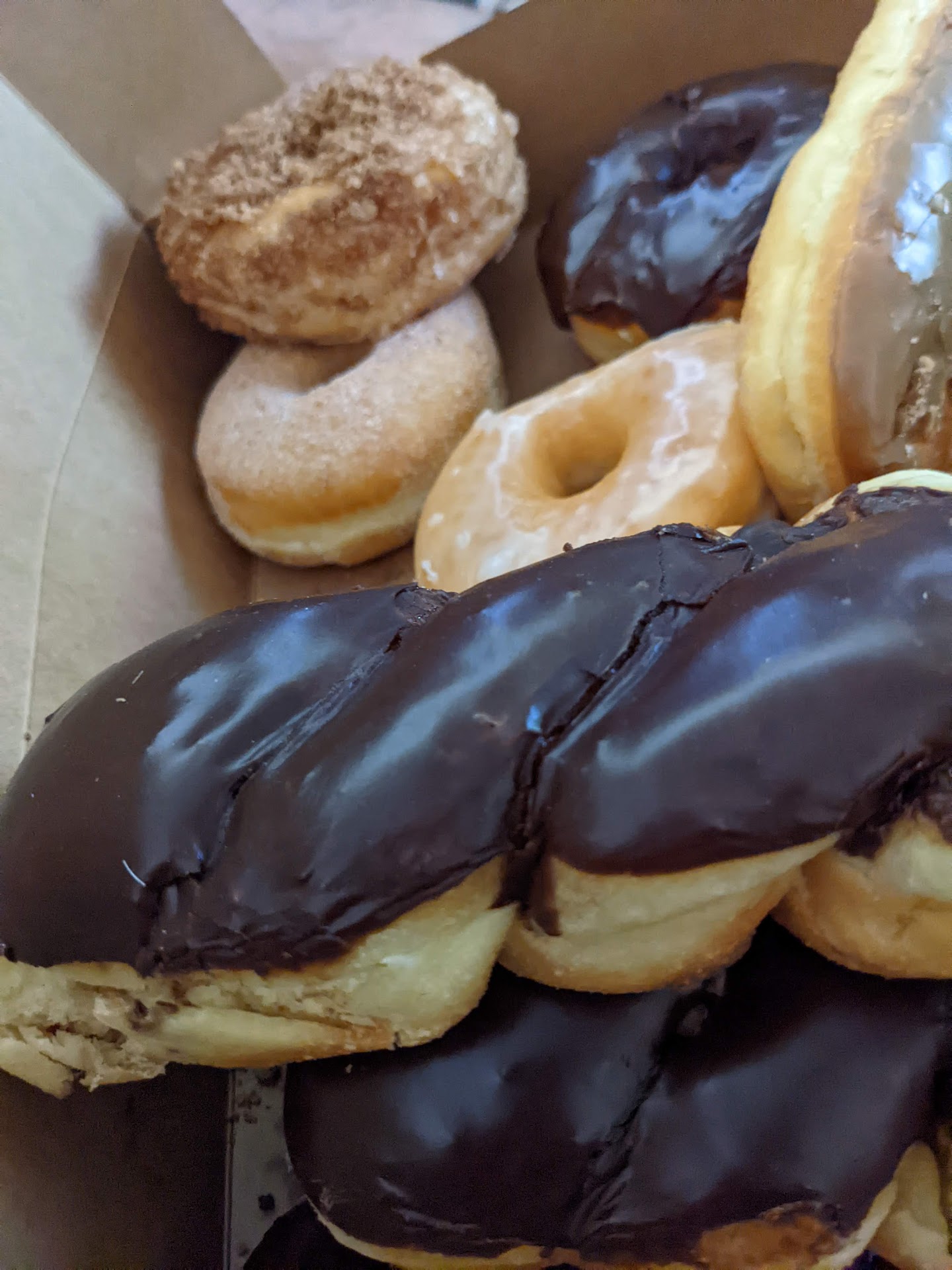 The place is bright and clean. Lots of donuts on displays and a clear visual menu up top for the tired person describing what sandwiches they have. The donuts were all fine. But everyone was really impressed with the breakfast sandwiches. The hunks of meat were really juicy and blended so nice with the eggs.