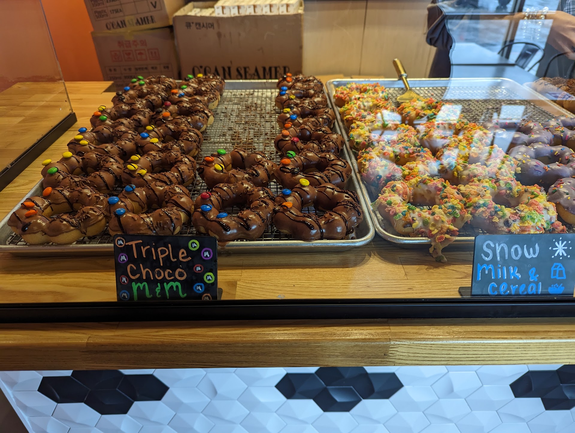 Read moreSometimes you just want a sweet mochi doughnut, some boba, or a Korean corn dog, and this place is your spot! Their menu is quite an interesting collection of doughnuts, Korean corn dogs, lemonade, and boba. They have a great assortment of mochi doughnuts, you can order in 3,6 and 12, and they have a few different ones to chose from so you can a variety! They have six drinks of milk teas and blends with boba and six drinks of lemonade/juice flavors as well. They even come in super cool looking cans that are see thru! The Korean corn dogs and soft serve are quite delicious. They also have a ton of toppings to chose from as well. I must say overall they are delicious and the drinks are fantastic. They are all reasonable prices, but I might add that mochi doughnuts are a little pricey compared to everything else. So check this place out! Great food and drinks, great service, and although busy they get you thru...