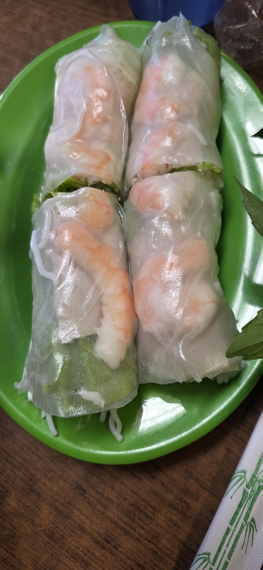 We ordered the phô tai chin (brisket and steak) as well as pork and shrimp spring rolls.