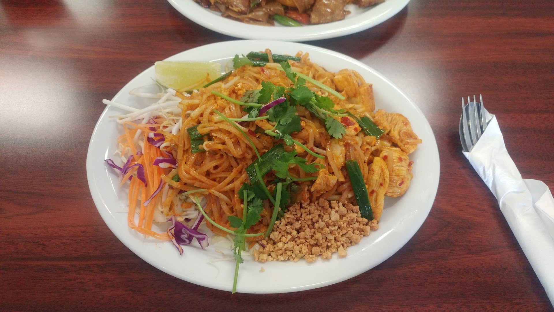Thai Orchid is absolutely delicious. Clean restaurant with plenty of delicious meal options ranging from soups, salads, noodles, curries, and lunch specials (from 11am-3pm/M-F). This location maybe small, but man do their plates pack such big/bold flavors. My husband ordered the Pad Saew with beef and was asked how spicy he would like it on a scale of 0-5. He asked for a level 3 and loved it. He said it had a sweet and spicy flavor that he very much enjoyed. Now as for me, I'm allergic to shellfish and tree nuts. So I asked our waiter if the Pad Thai had either to which he responded that it did have fish sauce (typically containing shellfish), but was quick to offer to order it with no fish sauce and said he would make sure the cook did not put fish sauce. He was so kind and made me feel at ease. The Pad Thai was scrumptious. I ordered it at a level 4 of spiciness and it certainly had a kick. Along with that we also ordered the Thai Fried Rice with chicken and that was very tasty. There was not a single thing that we disliked. The food was made fresh and brought out to us piping hot. We were able to enjoy a nice conversation, watch some news on the television and even joke around with the staff. They made us feel very welcomed. Lastly, we ordered the Mango Sticky Rice. Oh man! You should definitely try it. The Mango was perfect as was the sticky rice. We will definitely be back. Several people were there for lunch when we arrived and even more people placed orders for pick up. This restaurant has an A for a...