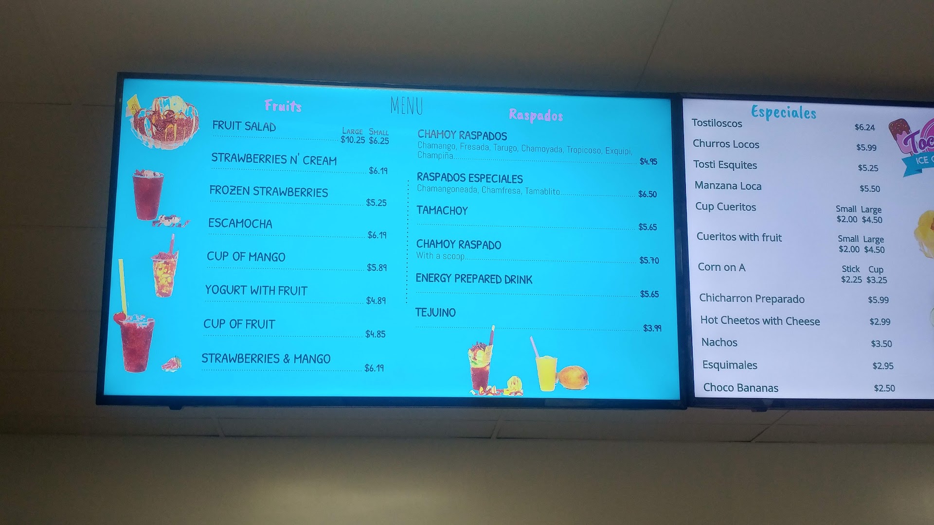 One of the best ice cream shops in town. I have been a loyal customer since the day they open their doors. I used to work in the same shopping center. I have traveled up to 40mins to come to this spot. The employees are always so sweet and very helpful with custom orders. They have the best Mexican treats from Tostilocos, Paletas (milk and water based), a wide variety of ice cream flavors, Aguas Naturales, Fresh Juices, fresh cut fruit salad,Smoothies, Raspados and so much more. This trip we opted for Tostilocos and the Small Fruit Salad topped with granola, raisins, shredded coconut and honey. Everything was Fresh and so tasty. The fruit was ripe, sweet and delicious. I highly recommend you stop by and give them a try. Their prices are...