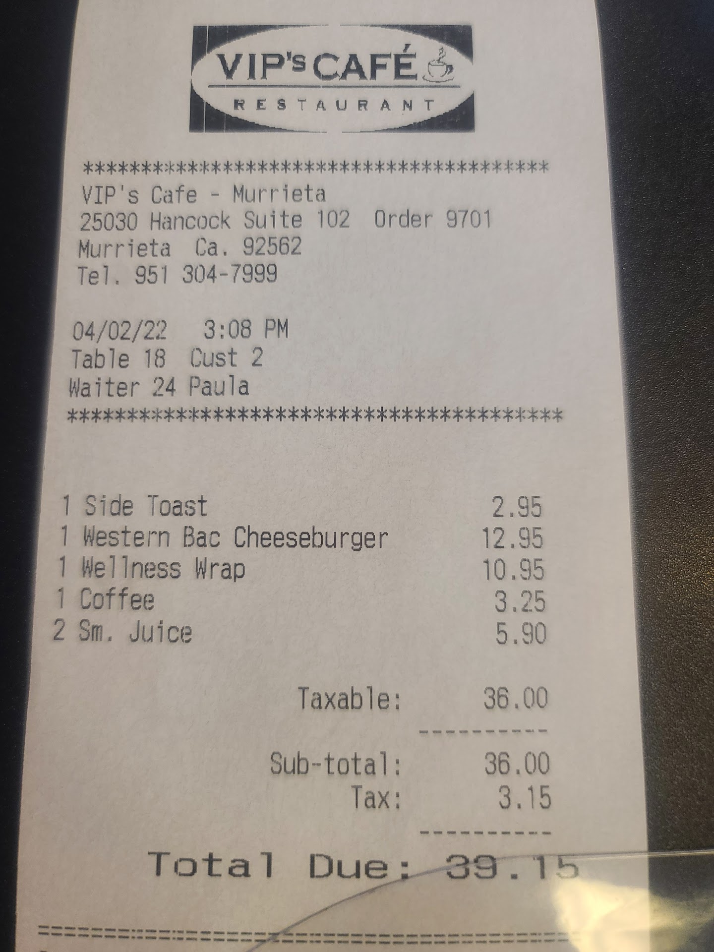 Read moreLmao y'all this place sucks. I asked for French toast and my brother got a burrito and they both brought them back with hairs. We told the waiter if we could get a discount when she brought back the bill and she asked the manager and the manager yelled at her 'no no discount no' lol guarantee if you eat here you'll hear yelling in the kitchen and get hairs in your food. . I've eaten here so many times and it came out good but that was the restaurant in menifee. This time in murrietta , it was outrageous. I ordered a French toast as the usual and It comes back with a hair. She asked if I wanted another plate but they took forever to make the first one so I said it was fine. Next of all my brother ordered a bean and cheese burrito with a side of fries. They come back with a side of rice and hair in it. We told the waiter and she said she would tell the manager. They came back with another order of fries for my brother snd they thought it was fine. When they handed us the bill my cousin told her if we would have a discount for the hairs and she said let me ask my manager. She went to the manager and she was yelling st her 'No, no discount we gave them fries" she came back and said sorry we didn't care tho do as we paid we said we would write bad reviews so here we are. :) that's all just know if you eat there , there will be a hair...