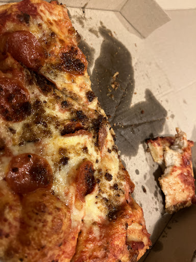 To be different I got a taco pizza. Well, something was off with it. The tomatoes were bad. Like the yuk ones that are hydroponics or whatever. Not ripe, no taste. But it went deeper than this. After a couple pieces w tomatoes picked off I realized something else was wrong. A weird taste. Like metallic or something. I couldn't eat anymore.