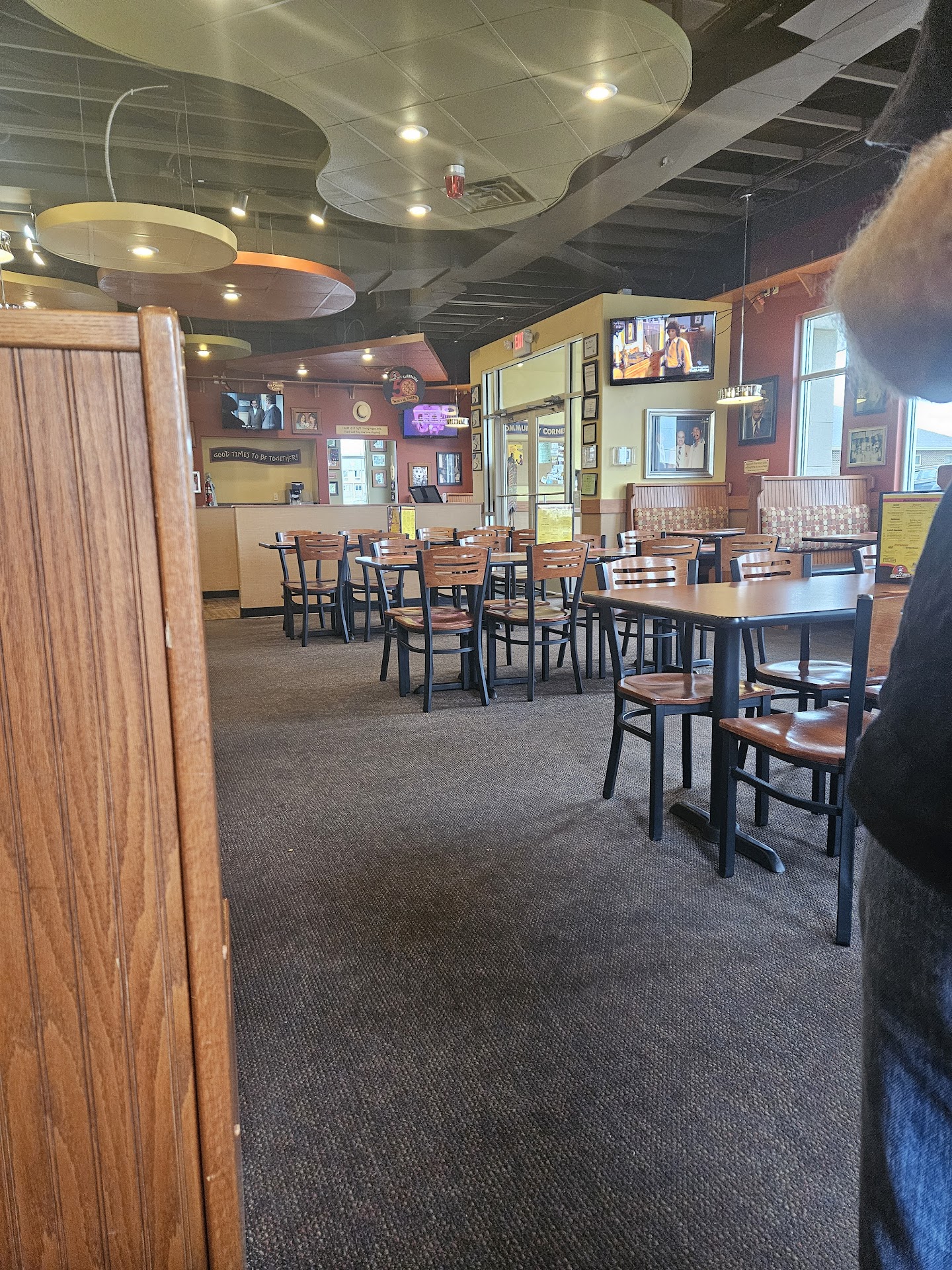 ย ย ย Read moreThe pizzas were good when we finally got them but we had to wait close to an hour for 1 large and 1 medium pizza. They were not busy at all. It was a week night, Tues or Wed I believe. It was my sister and her husband's anniversary and my mom's birthday. One of the staff voluntarily came up and told us we would get 10% off because we had an anniversary in our party. We asked, "even with a coupon?" He asked and they said yes. To make a long story short, when they were ringing our pizza and pop order up a different person told us we would also get that discount if we paid separate, which we didn't want to do, but we did, and we still did not get the 10% off....good pizza, was it worth an hours wait, No, the whole discount thing that never transpired was a huge hassle. Enjoyed spending time with the family but they need to get some better knowledge of their policies and faster cook...