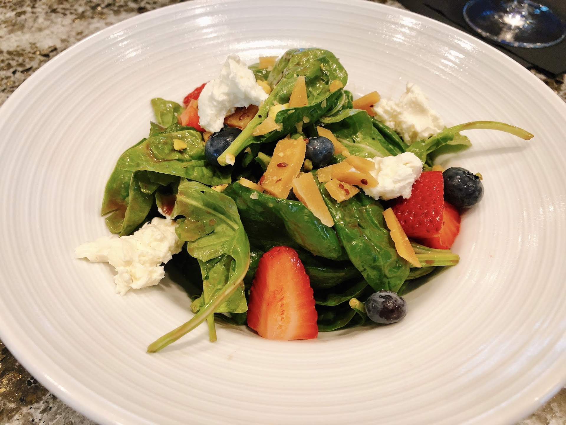 Read moreIt was far from a quiet romantic meal for my birthday! Way too noisy in the open concept dining area and the only view we got were the smokers smoking outside and the cars pulling up to the front lobby door. Personally, the dining room should be located upstairs on it's own! The food was adequate: the french onion soup did not have any baked bread crumbs in it and way too much wine?! The filet mignon bled all over the mashed potatoes because they placed the steak on the potatoes! Big Mistake! Drinks were okay but my husband has had better Old Fashion and my pop was different tasting in the rum. Couldn't put my finger on it. Not satisfied in the least. Oh, and we wanted salt, pepper & some additional butter but by the time we flagged our waitresses down, the food was cold. I "get" the slow dining experience but come check on your table for their needs and wants at least once! We spent plenty of $ for 2 people and walked away dissatisfied. We will continue to go out of town for our 5 star meals...