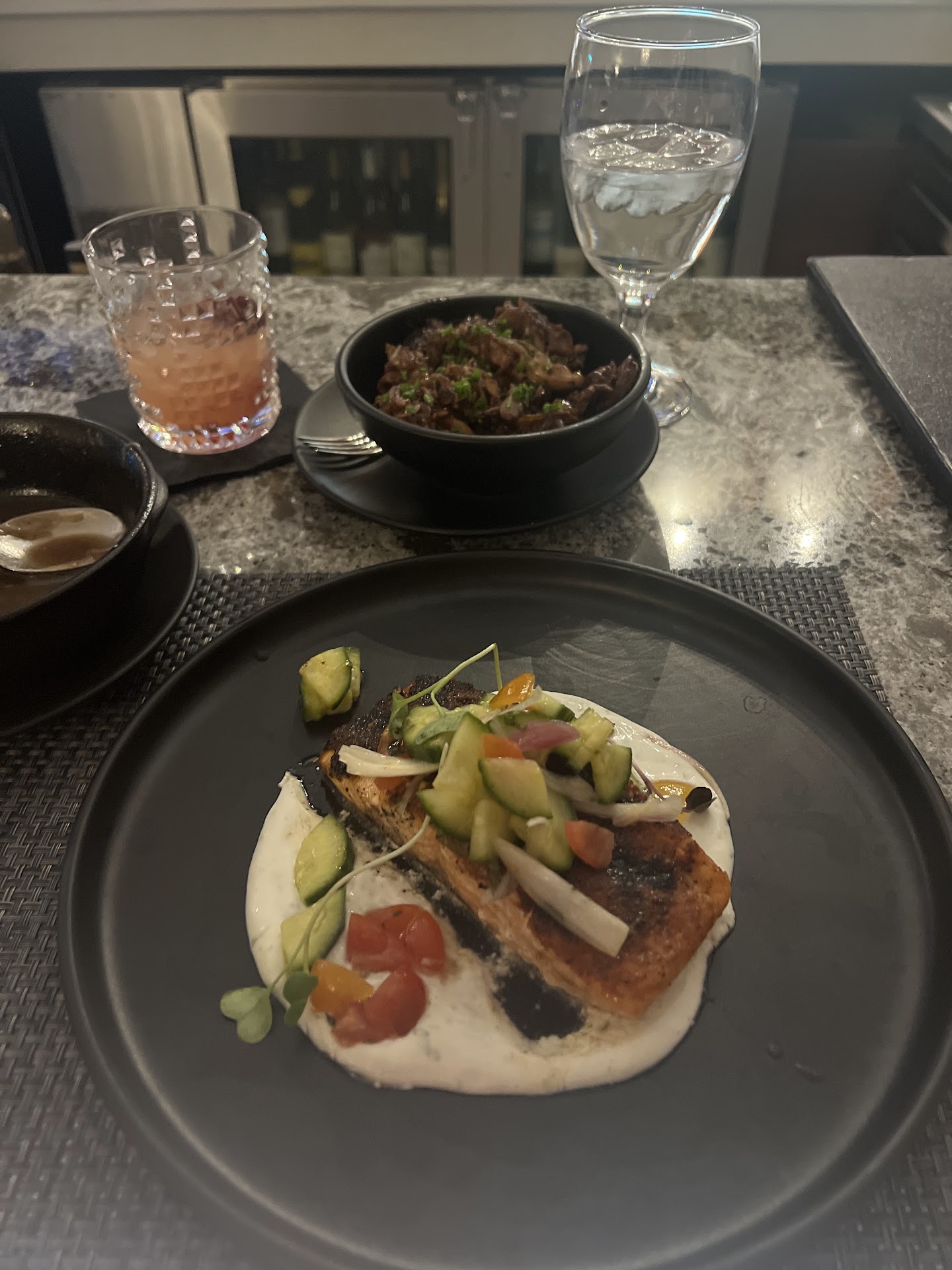 Read moreVery nice atmosphere restaurant. The service was fair. Not excellent. We sat at the bar and the waitress seemed distracted by other people every time we tried to order. We had to wait about 10 minutes to order until she was finally squared away. I don’t know if they were short of help or she just Considered other people were more priority but either way the food was excellent. Very far overpriced but still very good food. I had the salmon with a side of onion soup and also aside of their specialty button mushrooms. The value though isn’t quite what I expected. Very nice atmosphere. Very eclectic, very modern and decorated very tastefully. I came here in mid January and they still had seasonal decorations up from Christmas, which made it still very...