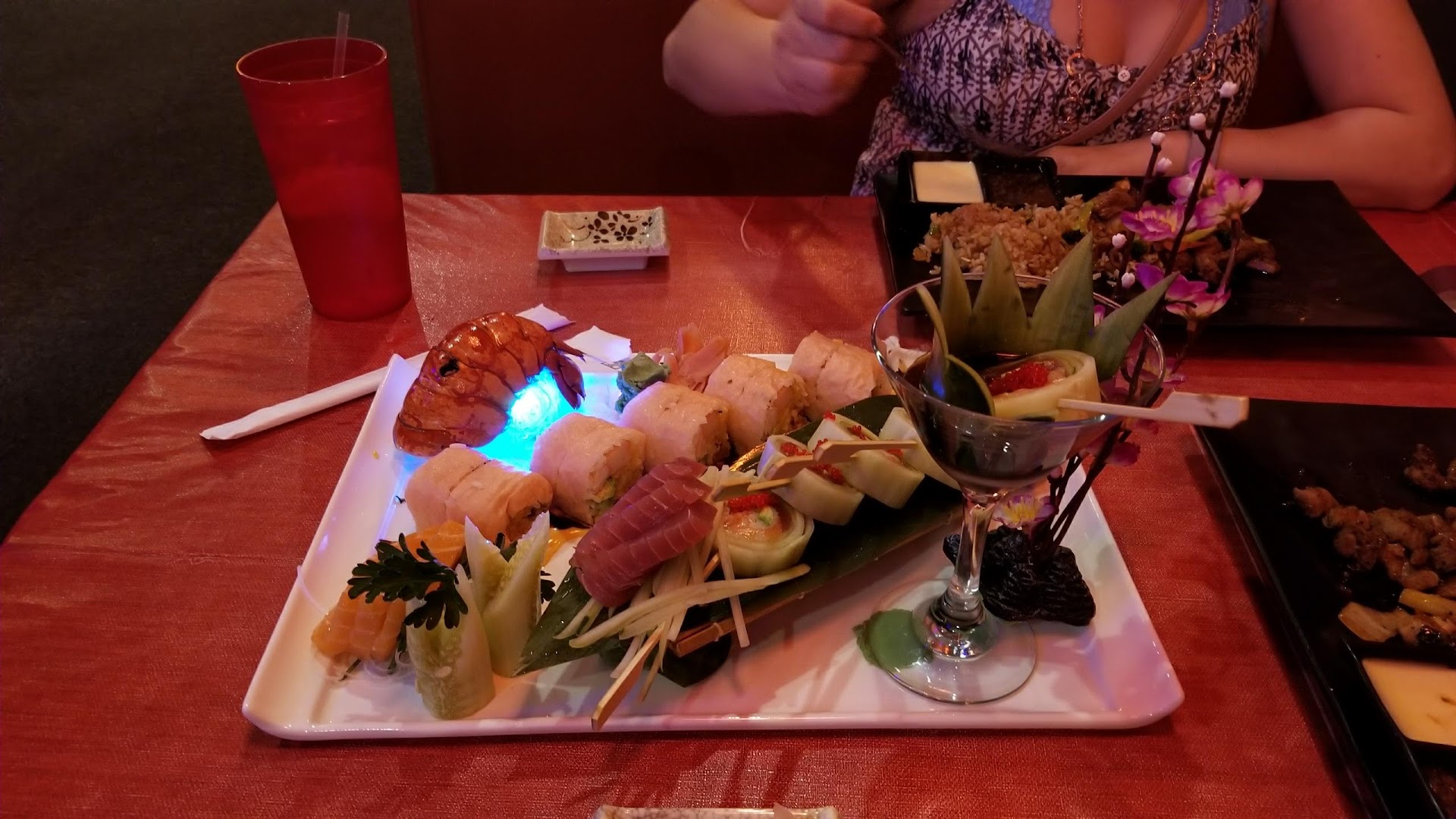 Read moreFirst off starting I really don’t leave horrendous reviews but others should be informed before they go, maybe they will have an adequate experience. We Waited over an hour for our food. We ordered the same thing both, hibachi dinner New York steak & scallops. And a rainbow roll of sushi. During that time didn’t see our waitress other than to take our order. Never got a refill on drinks or checked on. There was only a party of about 10 there & one other table when we arrived. While waiting we watched two other tables get served before us, that had only been there for 30 or so minutes. When we did get our food. It was cold. And we asked medium rare on steak. Me and my partner hate to even say or make an issue ever but we spoke up. They offered to heat up the food again and give us a gift card. We really didn’t even want the food at that point due to the wait and the food being cold, like who wants reheated seafood? But that’s what we were offered. So we paid 73$ and got a 30$ gift card for next visit, which if we do come back maybe only for sushi. Didn’t like the fact we were offered to have warmed up food after an hour of waiting.. at least the gift card is nice but horrible service. And for how the menu is priced you expect the service to be...