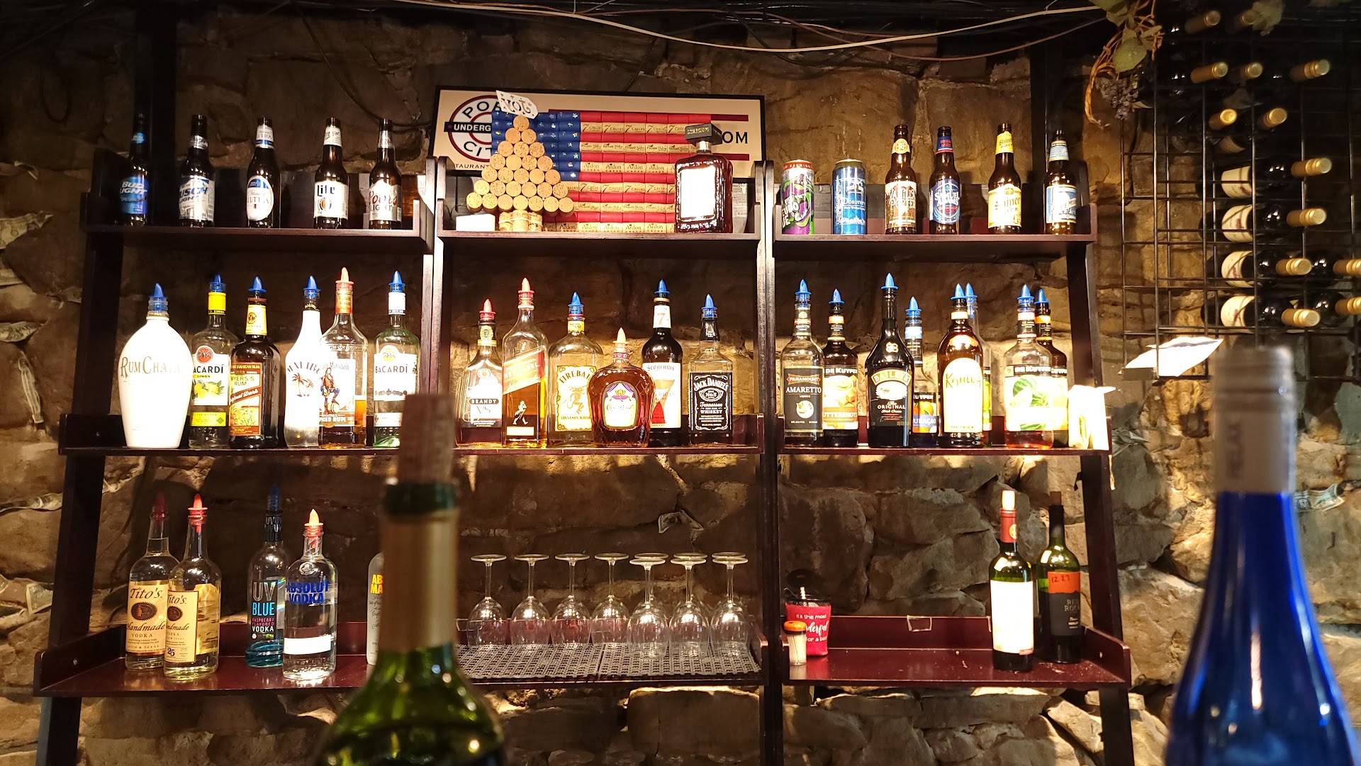 Read moreFriendly, helpful waitstaff. Relaxed decor with exposed stone. Dark at first, since there's almost no natural light, but once your eyes adjust, it's not bad. There seems to be a nice variety of drinks. There is a bar, booth and table seating.