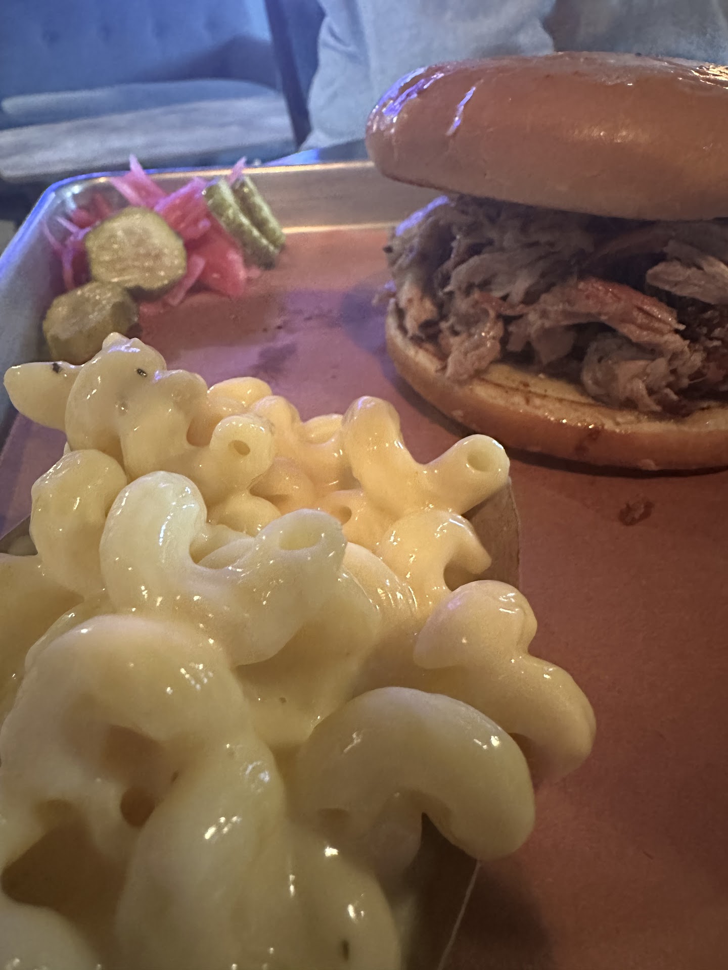 The ribs were excellent, the highlight of my meal! I also enjoyed my girlfriend's brisket. The mac and cheese was basic, and the fries were quite good.