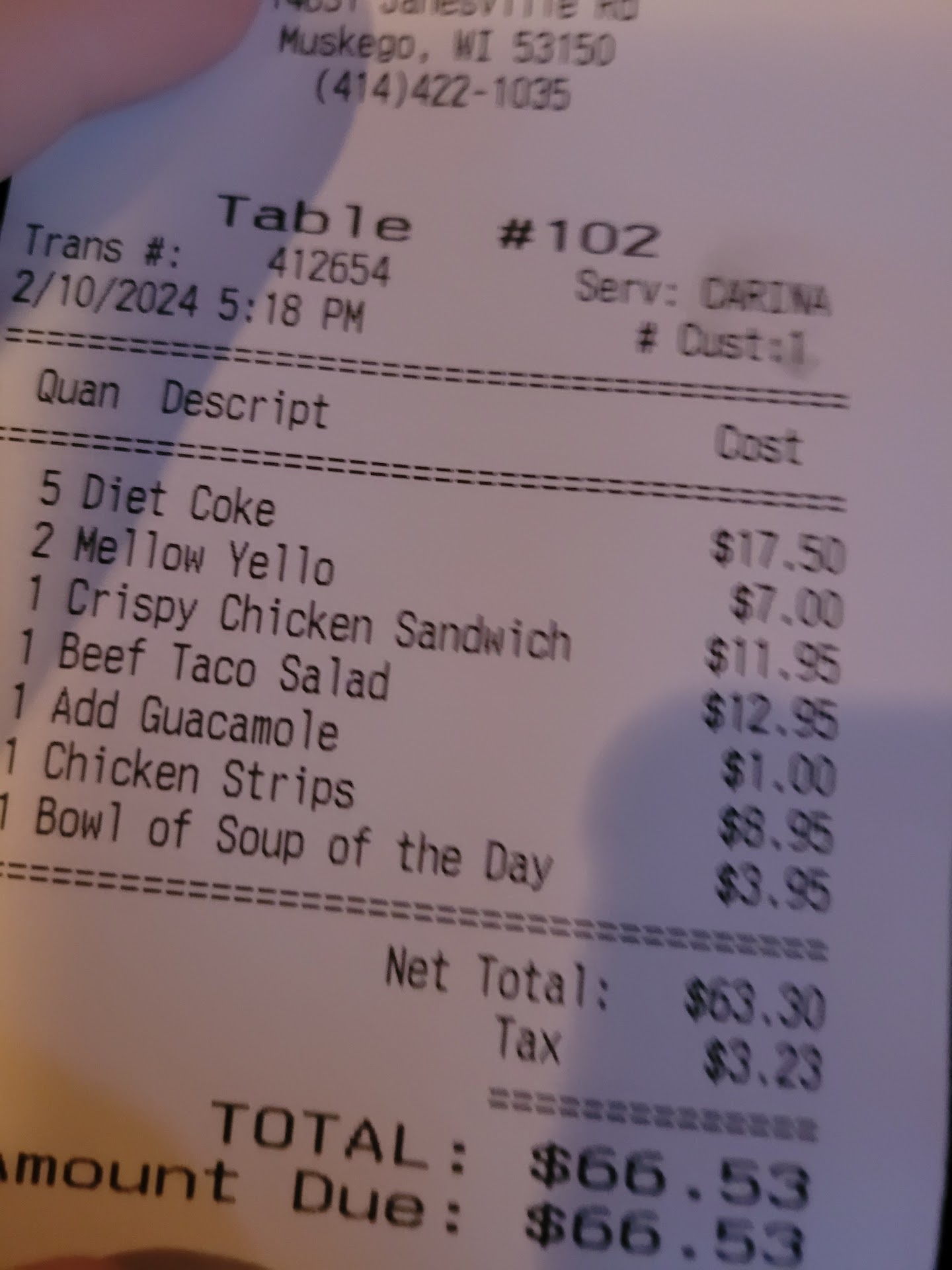 Total disappointment. Went in to get a fish fry with our family. We ordered 3 fish fries and 1 steak along with appetizers. Our apps came out quick and tasted fine. We then proceeded to wait over an hour for the rest of our meal. About 30 mins into that hour we were approached and asked how everything was and we told them we haven’t gotten our food and she was confused as to why not...so she went and RE ORDERED our food. After 30 more minutes we approached the bar to ask where our food was...at the bar we witnessed bartenders and wait staff whom were all “overwhelmed” taking shots. There was a blonde (curly haired) bartender who we asked and she went to check for us. She then approached our table and told us out steak was the reason for the hold up. The steak needs 20 plus mins to cook...even if that were the case we should have had out food long before then...we tried to calmly explain how we had been there 2 hours and she wouldn’t listen to us. She was RUDE...and that’s putting it lightly. She interrupted us, wouldn’t listen to our side of things and accused us of lying. The only reason I’m giving even one star is because the lady who came to our table at the end of the meal was incredibly nice, apologetic and embarrassed...even though it was not her fault in the least. Bottom line, they should have more staff or at least more competent staff that don’t drink behind the bar during a dinner rush and get frazzled when a family of 4 and a baby come in to eat a fish fry on a Friday during lent in Wisconsin....the food was sub par at best. Wasn’t enjoyable most likely because of the experience as a whole. They will not be getting mine or my families...