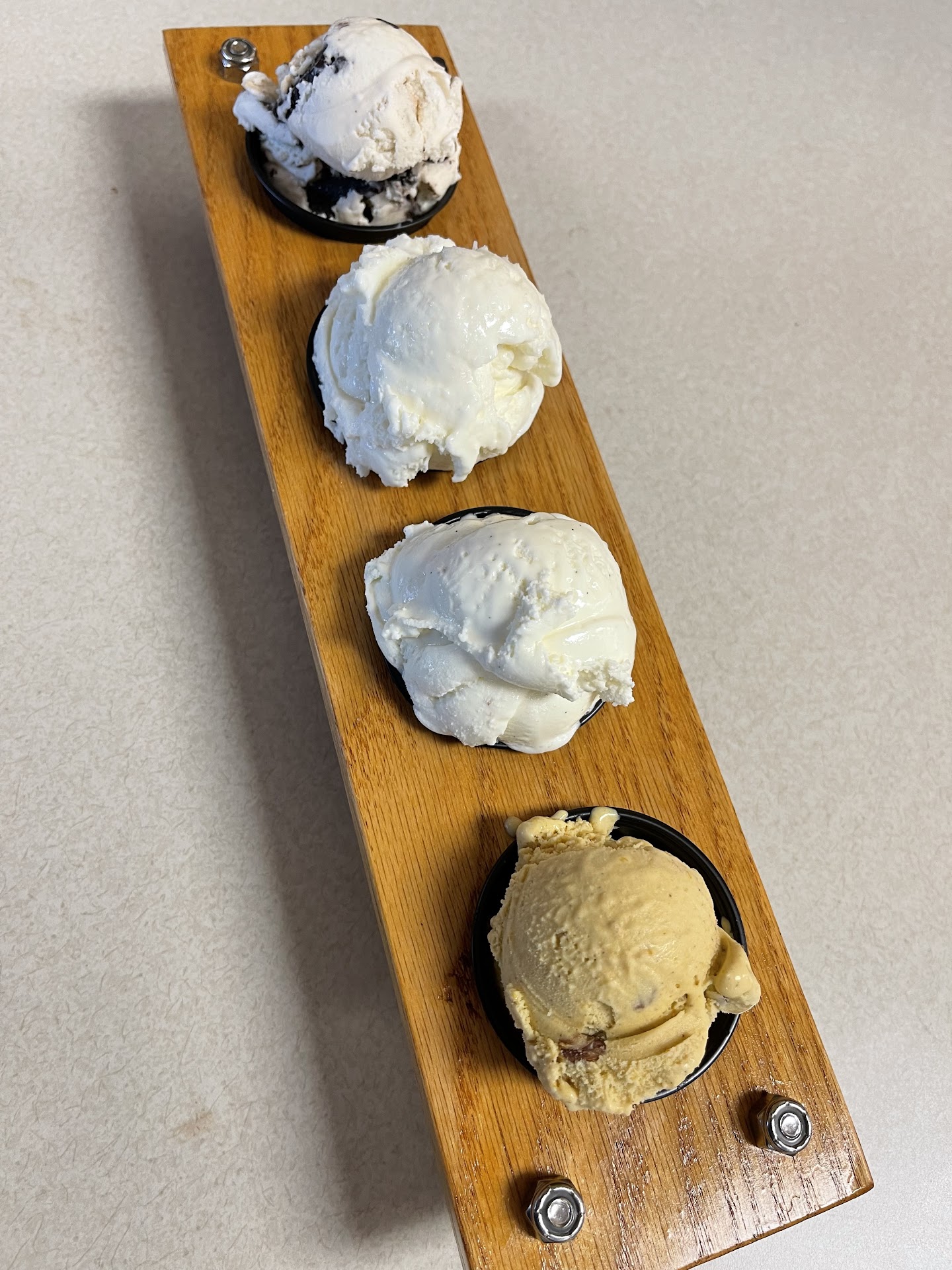 So, the ice-cream. I am typically a custard fan, but this ic cream is amazing! I felt like the consistency was closer to custard than other varieties of ice cream i have had and it was super creamy. They have 20 flavors, a couple seasonal. And once they are out of a flavor you may have to wait til the next week when they make some more. It’s a local place and the owners are hard at work keeping the ice cream stocked for the week.