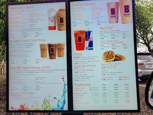Read moreDuring Covid, only drive-thru is available. Drive-through always seems to be very lengthy in wait time... large variety of hot and cold beverages coffees teas, iced drinks include Red Bull and fruit ice drinks. I typically get a 24 ounce iced or hot mocha mocha with an extra shot and the cost is 6.99.. from the the beverages that I've had there is a good flavor, my mocha mocha with extra shot as a chocolate and yet strong coffee taste. They do offer minimal food such as muffins, cookies and breakfast sandwich. They do have a lot of promotionals on social media and print ads that offer bogos for your drinks, and free shot Friday... compared to other coffee shops like Brooklyn Bagels where I can get the same drink size for around a $1.50 LESS.... I do prefer the rich and Boulder flavors of Biggby I'm an avid coffee drinker and I have stopped there literally every day, half the time I leave because the line contains at least and 10-15 vehicles during peak times. Most the time throughout the day if I'm getting coffee it's probably a 4-6 car wait... My recommendation would be to fix the congestion with more staff and maybe double order lines.. Also loving coffee I found recently that Vietnamese coffee and teas are the best ever in the world, strong bold sweet. I've driven a Holland from Muskegon on several occasions just to get a Vietnamese coffee. The Asian culture takes great pride in their coffee and tea products.. If you have not tried one I truly suggest...