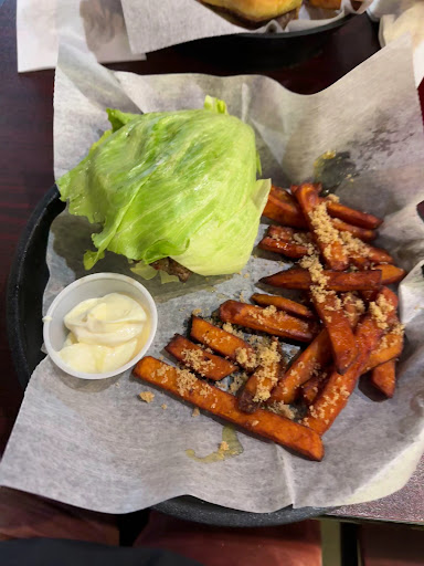 We were greeted warmly and served drinks and menus right away—great first impression. It’s a quiet sports bar type place, not very busy around lunch time. I ordered the olive burger on a lettuce wrap with sweet potato fries, and it absolutely hit the spot. Fresh, flavorful, and cooked perfectly. The sweet potato fries were crispy and delicious topped with brown sugar. I was so hungry and everything hit the spot. I left satisfied!