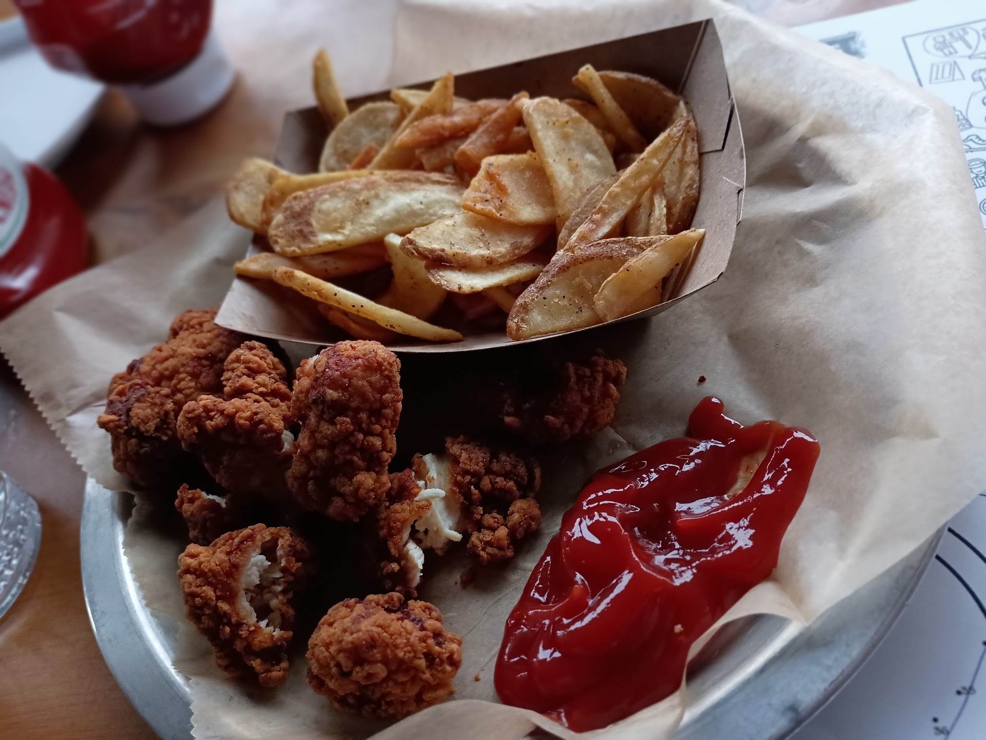 Overall a good experience, I went in a bigger group, we were sat on the covered patio area, which was great once the heaters kicked on, I'll give them an 11/10 on how effectively those things work! This restaurant is attached to the LC Walker arena (that now Trinity Health arena), it's nice to be able to hear the going ons of the games without having to actually pay for the games š . Food was general kitchen food, not too spectacular but not too shabby as well, what'd you would expect of an establishment of the kind. We went on a Sunday evening so it wasn't too busy for the time, pricing is ok, some of the items are a bit pricey depending on what you get, the drinks were pretty good. My daughter got popcorn chicken and fries, the chicken, although very crunchy on the outside was nice and even cooked on the inside, leaving a very good taste in the mouth (of course as mom I had to try someš) the fries were okay, some harder than others. My order of loaded fries and sweet potato fries were great, id go back just for the sweet potato fries š¤¤. The waiters we had were good, although I think because we were a bigger group they kept forgetting a lot of things prior to our food coming, although there was no mix up...