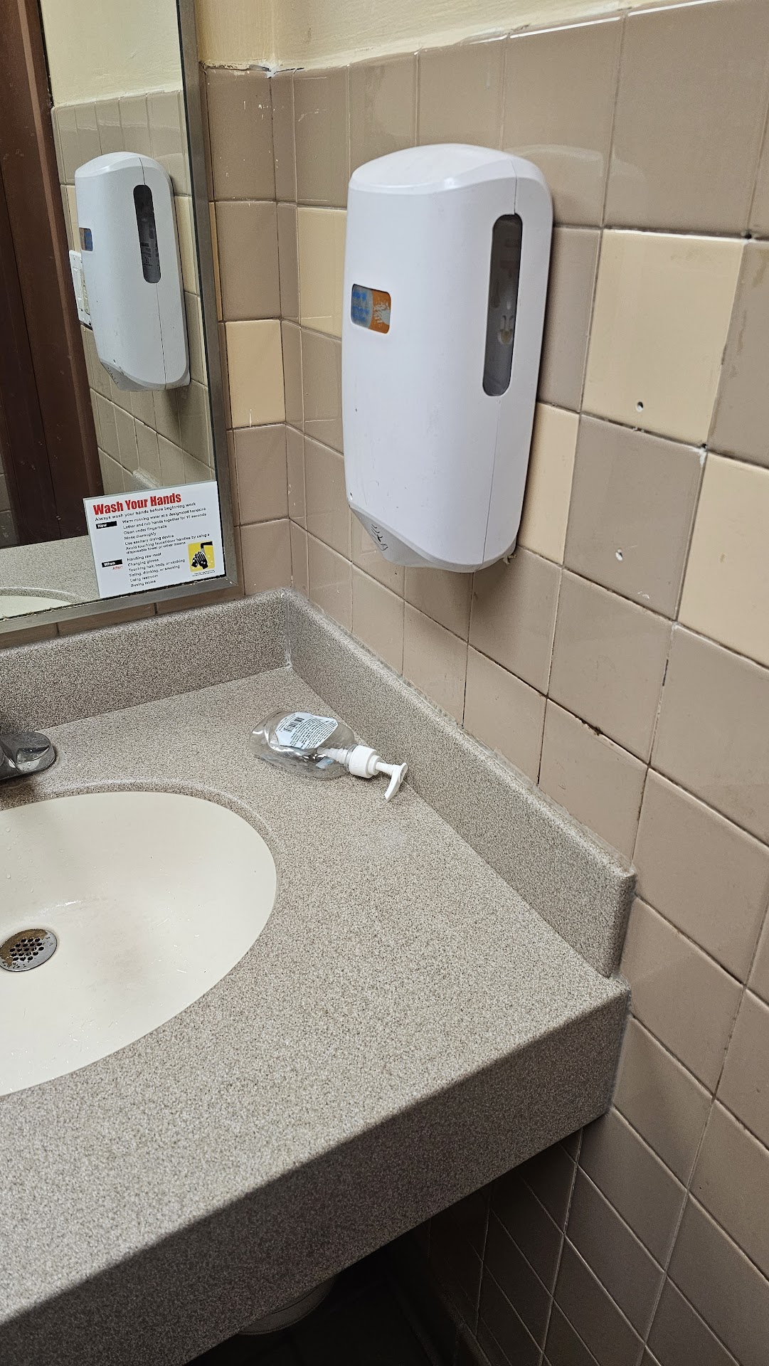 I politely informed the young woman behind the counter and she looked at me as if she could care less. No action was taken to provide soap in either rest room.