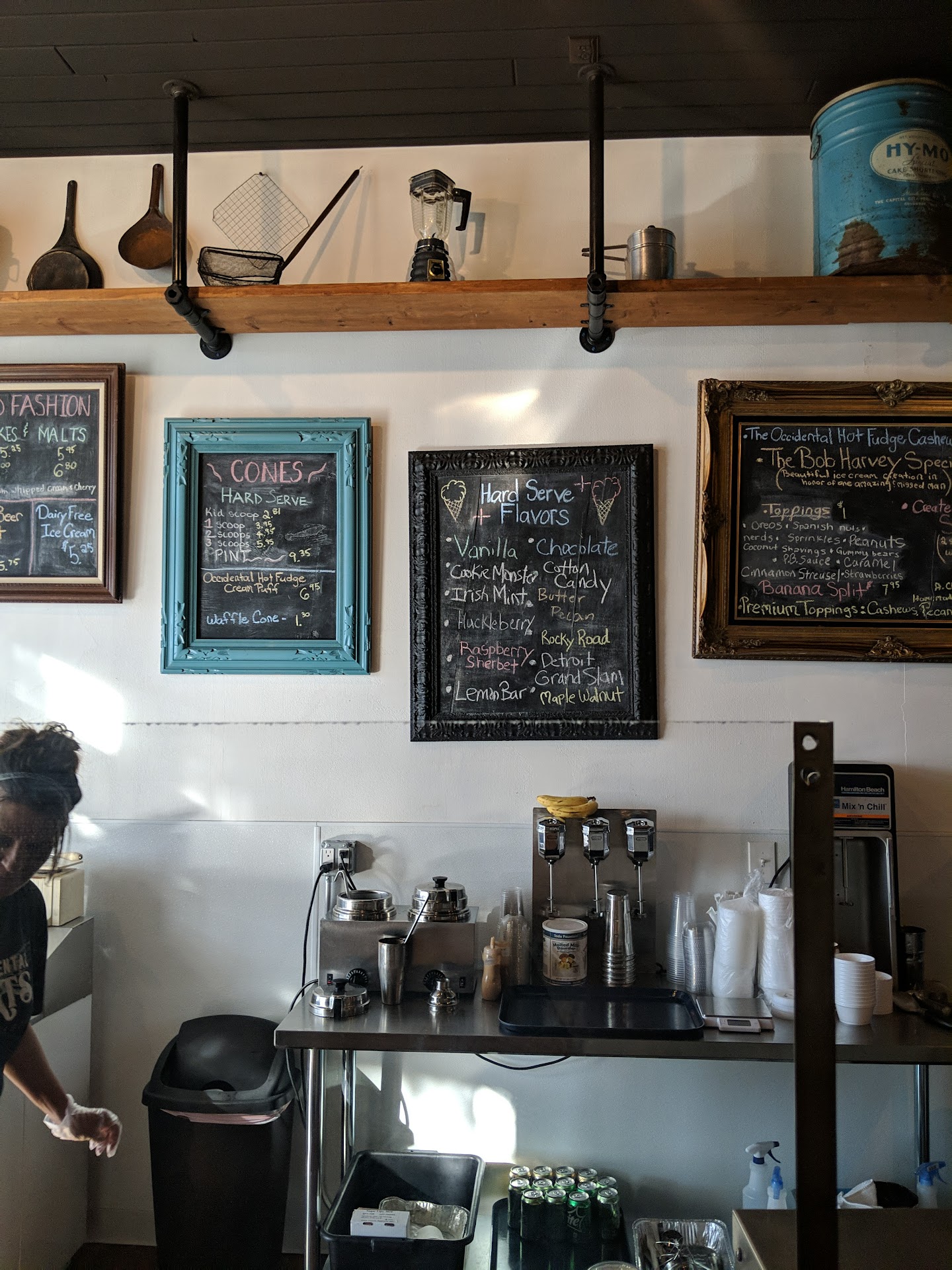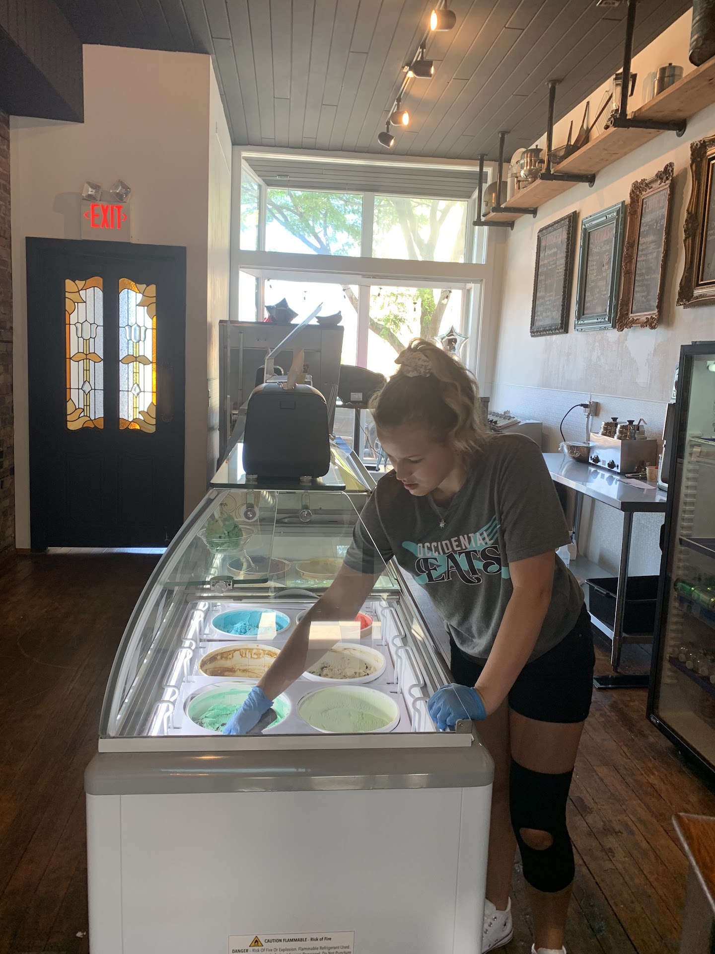 What an awesome place!! Excellent ambiance, decor, staff, owners, and very importantly....the ice cream!! We were greeted by Eric upon entry. He shared with us the history of the location, it's namesake, and how they got started.. a wonderful story! We sampled several of the flavors and could have chosen any of them for our main serving. Excellent sized portions and very reasonably priced. The Occidental hot fudge is delicious. A must try! They also make small batch specialty ice creams. I loved the malted flavor! As we were leaving, they mentioned that they also make food items as well. I noticed the chicken salad on the menu and said how much I like chicken salad. Chef Eric said he would be right back with a sample and quickly ran to the back. I was expecting a small spoonful, but he brought out a big plate full of the delicious chicken salad. We ordered three to go! The portions were enormous and was some of the best chicken salad I have ever eaten. The fresh, perfect croissants only made it better! A must stop if you are in the area or just...