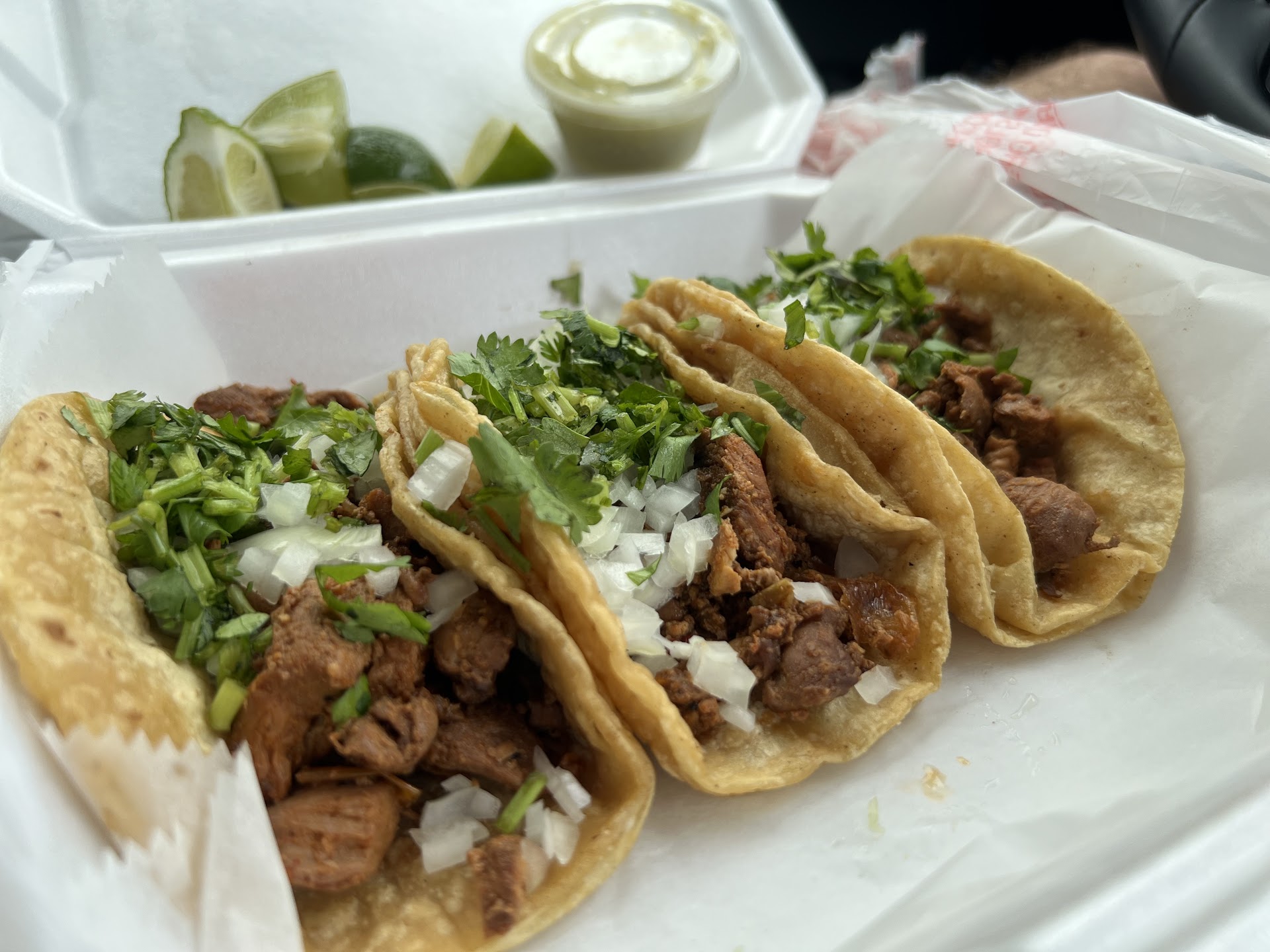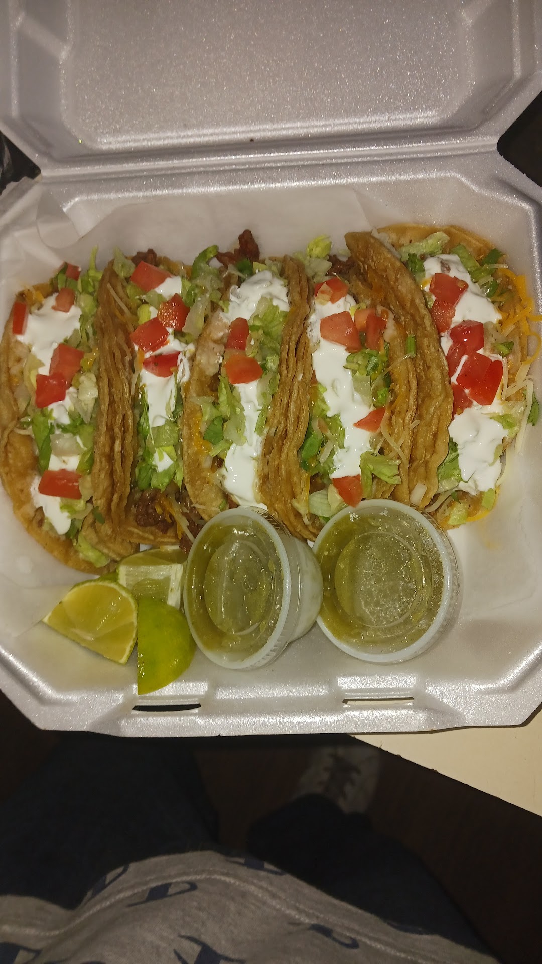 Read moreTacos are amazing but they DO NOT KNOW HOW TO MAKE A WET BURRITO. I just want meat and cheese and they do it different every time. Sometimes cheese on top only sometimes cheese inside only. Today I got no cheese at all!!! Cost $8 for just hamburger with no seasoning and they put sour cream inside and om top! Who...