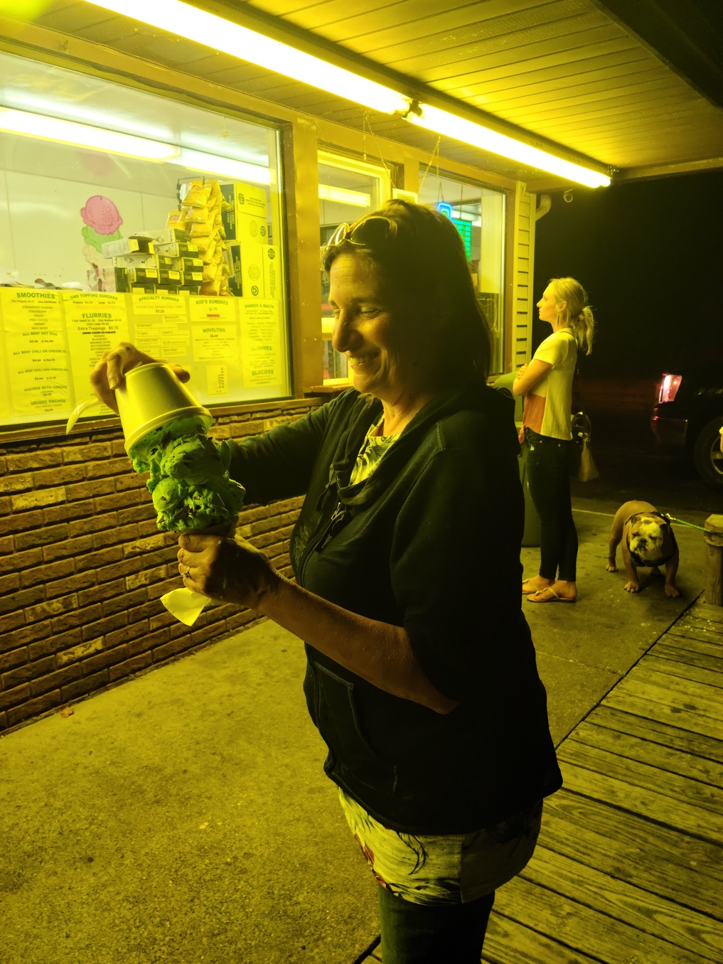 Read moreWe had a bad experience here! The kids that were working were unhelpful and 1 said "I need to go home" we got there at 9:30 & didn't get our ice cream until 10! My sister in law got 2 scoops of mint chocolate chip, ordered it in a waffle cone and got 2 scoops on a regular cone, picture below. She asked for her waffle cone and she told her you didn't order one then she said "I can't deal with this right now" & gave her a waffle cone. They gave her a cup that did not even fit the ice cream. She asked for a bigger cup and she told her she didn't have one. The girl ended up coming out with a cup she said she found in the storage room. My brother in laws cone had so much ice cream on it it fell off. My ice cream was not what I ordered either. I ordered a flurrie with peanut butter & reeses pieces and it was reeses peanut cups not pieces and no peanut butter. My husband's was fine a chocolate malt. Extra large portions but terrible service! They never cleaned the tables off between...