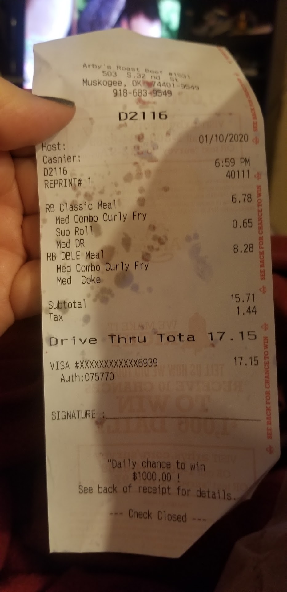 Read moreNasty! The food, service, and all around experience was horrid! We looked online for a place in Muskogee that had a decent star rating, as we are not from here, and found that every fast food restaurant has less than a 4 star review 👀. We are from Indianapolis, IN where service isn’t that great and it is hit or miss on food. I wasn’t expecting a whole lot from here after seeing Arby’s was the only fast food restaurant with a 3.5 star rating. The lady at the drive through window was hideous, honestly she needs to pick a different profession and work on people skills. The food came to $50, now spending that amount I expect an OK experience and edible food. What we got was an attitude and cold, inedible food. Even had to toss my husbands drink out because there was long black hair in the drink, hanging out of the cup. I couldn’t finish my sandwich due to the bread being hard and no Arby’s sauce on the meat. Yuck, never again will we stop in...