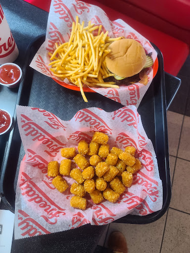 My experience was a 10 out of 10 I haven’t had a better burger in my life the staff was amazing and the restaurant was the cleanest place I have ever been I would eat off of the floor it was so clean. I’m going to be recommending everyone that I know to come here. My food was fresh and came out very quick. The fries were by far the best fries I have ever had I love the thin string fries that they offer and the seasoning was amazing. After my burger and fries. I ordered some of their famous custard and I have to say… I can definitely see why they are known for the best custard and burgers. Perfect consistency and amazing flavor. I recommend the peanut butter cup banana custard it was very tasty. If anyone is in the area I recommend coming here. My wife and I enjoy every aspect of this restaurant. We are retired and travel the country now and this was definitely the best experience we have had in the past few years. I would drive 100s of miles just to come to this specific Freddy’s. If I could give it 10 stars I would. Can’t wait to come back through the area and eat...