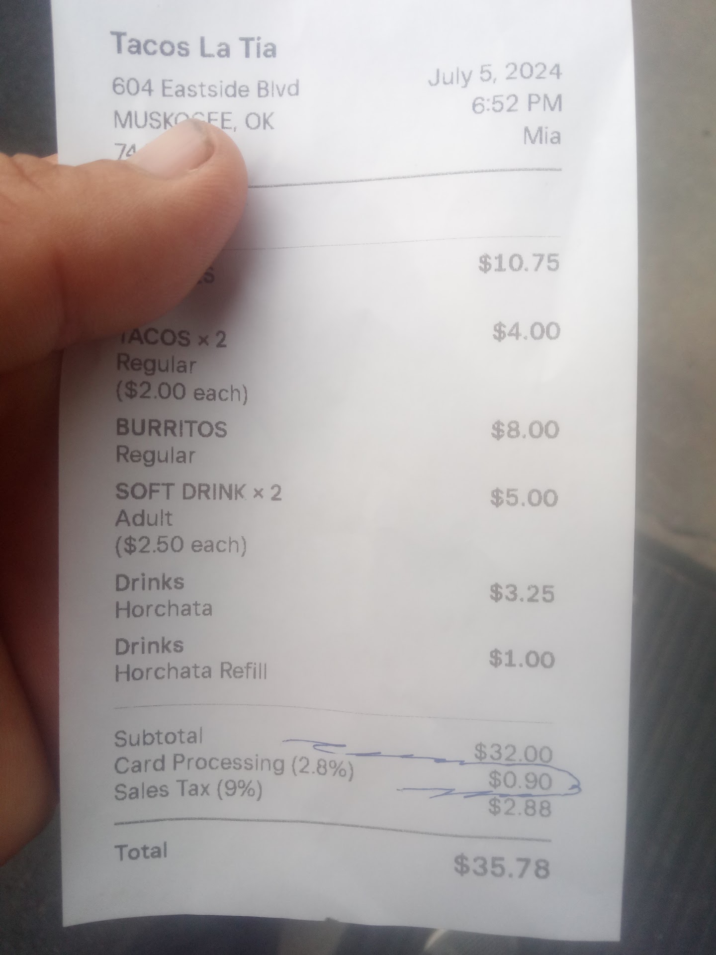 Ā Ā Ā Read moreTaco Tia's is a Mexican gem in Muskogee. The tacos are out-of-this-world good. You choose your own tacos which is a corn tortilla Street type taco and is simply excellent. You choose the meat. They have al pastor and lingua which are my two favorites. They also have beef, barbacoa, chorizo, and more. I think I've had them all in there all excellent. They have sopes, gorditas, tostadas, as well as soups, which are one of my daughter's favorites both the chicken and the beef. They also have tripe if you like tripe. For the first time tonight, I had a burrito. It was wonderful. I chose the al pastor burrito and do not regret it I'll be a little messy on my part. I also had to have a lengua Taco. I cannot come to this place without having something lingua. They have much more on their menu, but this is all I can think of at the moment. We just were here two or three weeks ago and I've been wanting to go again ever since then cuz it keeps being on my mind it's so good. Make it on out to the southeast part of Muskogee and you will not be disappointed. We come from the porter area and don't even think about the trip...