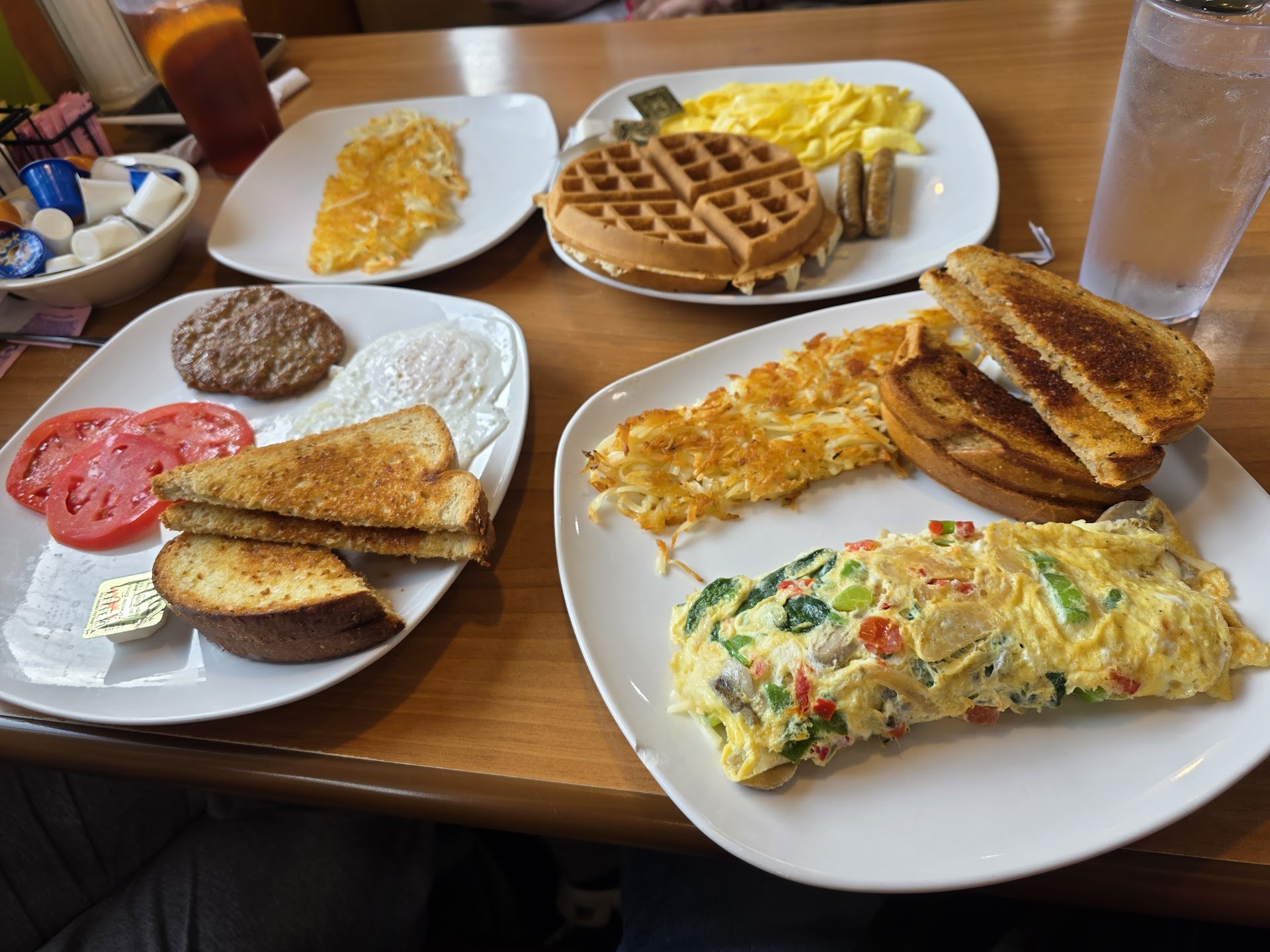 After circling the parking lots of the Muskogee VA for 45 minutes and not finding a parking spot, I cancelled my clinic appointment and headed for Jimmy's Egg. I was promptly offered and served a great cup of coffee by a smiling waiter upon seating myself at the counter (I really like watching the cooks do their thing). He sensed my frustration, completely put me at ease and informed me of the Veteran's discount I could receive when pay my bill. My waitress was timely in taking my order; despite a full house I received my Traditional Breakfast in a short few minutes. It was delicious, comforting and tasted even better because of the smiling friendly team of cooks I observed putting it together. My waitress and I briefly chatted about the disasters that were occurring "real time" in our respective countries---she was busy ---the young man that served my coffee was busy---but they took time to empathize with me. My goodness! With a genuine smile the manager took time to be sure I was pleased with my meal. Great food,clean restaurant--+no sticky counter, fantastic,neat, friendly, pleasant staff with an obvious desire to work together-----seamless! I walked in upset and stressed,but I left with a positive attitude, satisfied by a great experience. Thanks,I really needed that and I will return. KUDOS to the Muskogee Jimmy's Egg Staff. You really know how to do it...