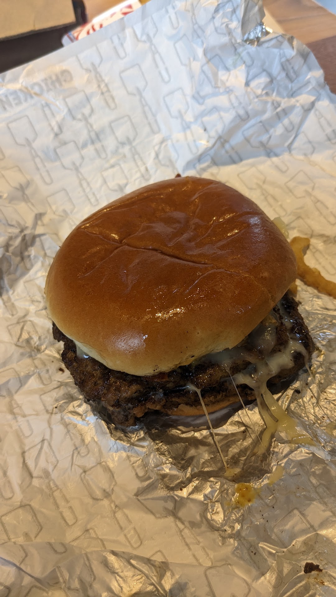 20230821T1420 - I arrived at approximately 1:40 and there was an employee sitting by the front door playing on his phone. He got up to take my order, which was mobile, and informed me that the pretzel bun for the sandwich I ordered was out. This was not reflected in the online app for this location like it should be. It was the only reason I came here. He asked if I would accept a substitute bun and I said yes since I already paid online. After I got my food 3 minutes later and for the next 20 minutes , he was glued to that phone, only stopping to take orders for the trickle of customers. Over the course of the next 5 minutes, two other employees joined him, just playing on their phones in the customer area. This may have been their break, I don't know, but it didn't appear that way. To his credit, he was super helpful to an elderly gentleman that was hard of hearing and needed a cane. I also noticed that while there were plenty of employees and almost no customers, the floors were filthy, multiple tables had trash on them, & both trash bins had stacks of about 20 dirty trays. The restroom that I used was sufficiently clean and everything was functional, however the toilet paper dispenser was open and empty. The Pub Burger was good even with the substitute bun, but it was ugly and smooshed. The fries were tasty. Spicy nuggets with Ghost Pepper Ranch...