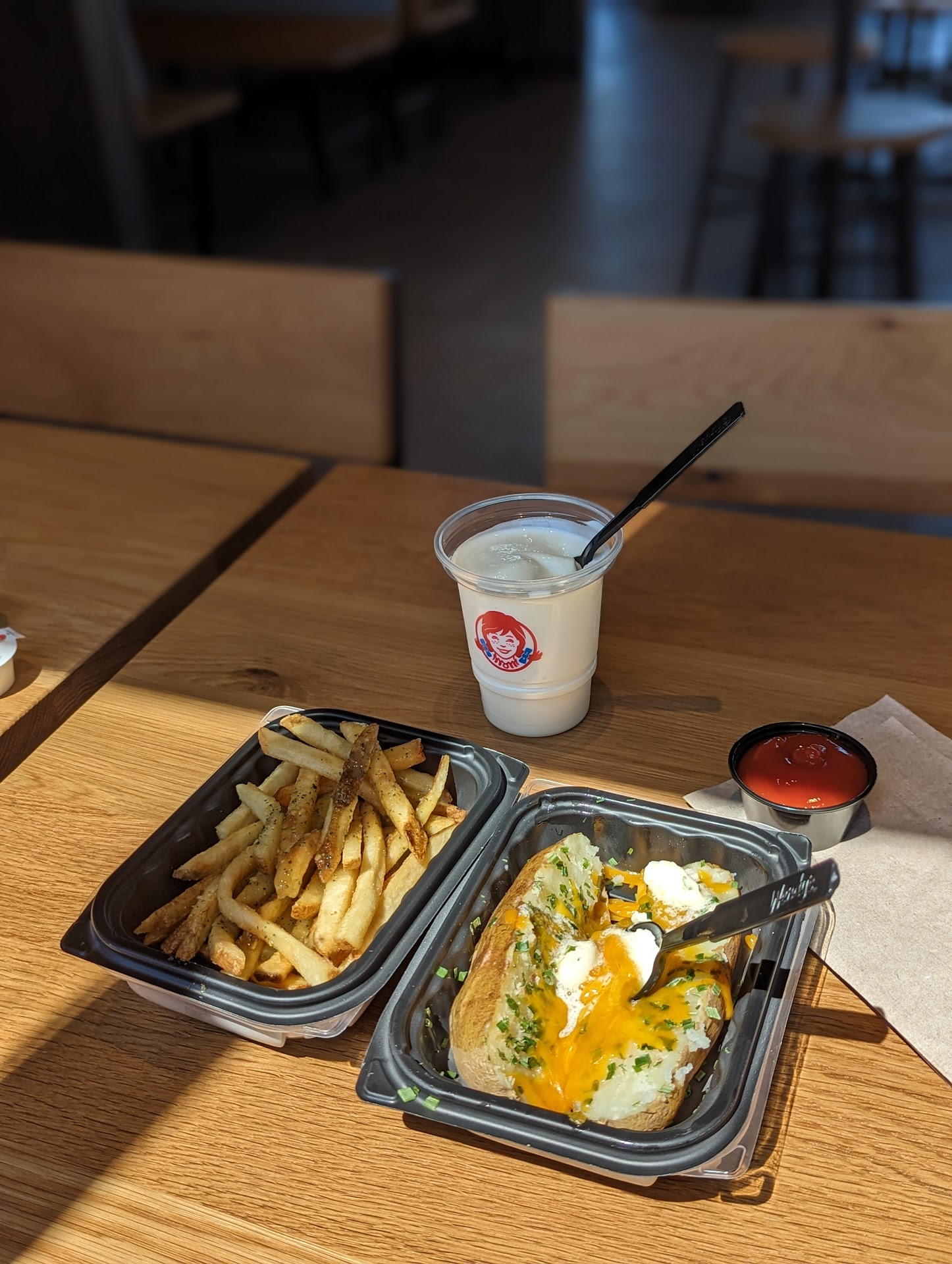 Read moreWendy's if your unfamiliar is a fast food place that has for many many years had fresh never frozen beef, it was one of the first fast food places I recall having several salads like the good taco salad. They also have baked potatoes on the menu they went to a natural cut fry with sea salt a few years ago. A longtime favorite is the frosty it's a soft serve ice cream and delicious. I enjoy their chili. They have chicken patties and nuggets in both regular and spicy. I'd be remiss if I didn't mention that bacon has a large place on the menu. That's all general and applies to the chain as a whole. It's a 4 star fast food As for this last visit it was unusual and why the rating at this one is low. They were out of alot of the menu items and some things I consider essential like water yes water they had no water to drink none in front or back to be had the soda was a freestyle machine usually alot of choices they were limited to root beer, coke, sprite and sparkling water no flavors just those 4 things it was odd. There was no chili. Frosty machine was down. All in all they had...