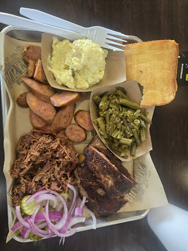Read moreWow, tried this for the first time and was sadly disappointed. There were 3 employees and the 2 making the order were great, the one at the register looked like he wanted to murder us for walking in the door. That stare was scary. The quality of the food was lacking, our meets were dry and not very flavorful. Like someone skimmed on the rub? Its BBQ so I was expecting flavorful meats. The portions were exceptionally small. The meats probably weighed out according to the menu but the sides were kiddie meal portions . For $20 per person in our party, feel like we didn't get a meal worth that price. We compared this restaurant to Van's and Van's wins hands down. We feed the same size family for half the price and the sides are abundant and the meats are so flavorful that half the time we don't even use the sauce. Sad to say for this restaurant, it was a one and done...