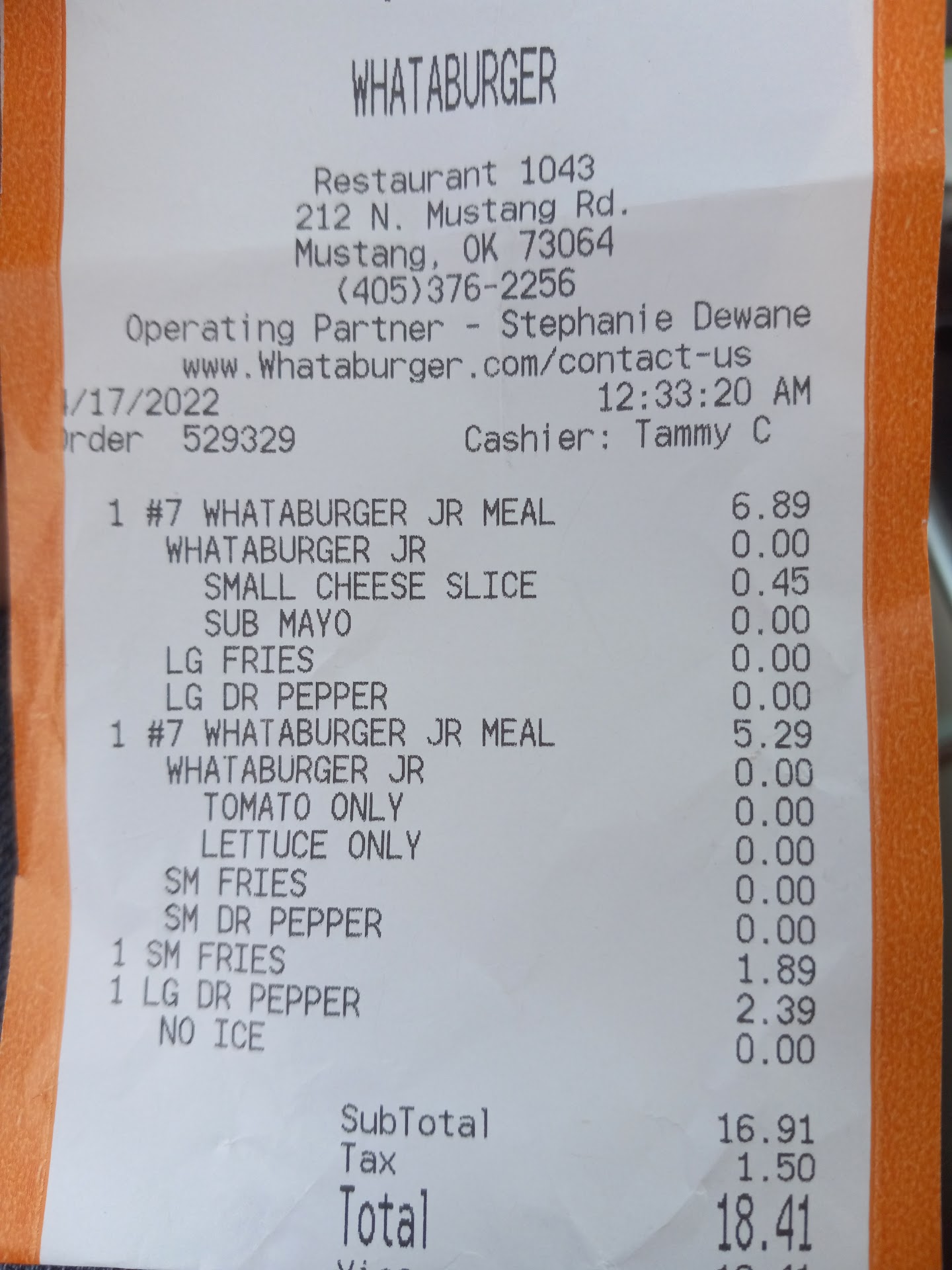 I thought I would give it another try to see maybe its just the previous workers, but after today, I don't think I'll ever come back ever again. Maybe some other Whataburger, but definitely not here in Mustang. 🙂