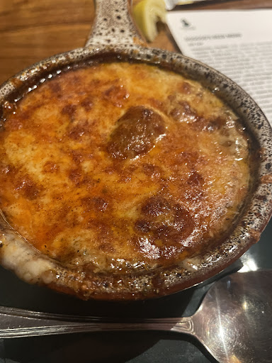 Read moreWent on a double date here and had a great time. The tavern is decorated in rich colors, warm wood and is very nice inside. We were greeted by friendly faces, sat in a nice room with plenty of space at the table. The food was so good! Everything we got turned out great. The French onion soup was yummy but the onions a little on the crunchy side and pretty salty. The special of the day was a Thai bbq chicken breast with shrimp and sides which was sooooo good!! I had the fish and chips- a nice piece of fish in a crunchy batter served with a basil cream sauce and interesting tarter- very good. The chips were house made - I typically prefer French fries and would probably change to that next time. The chips were thick cut rounds of potatoes, not crispy or hot- nothing special. The brussel sprouts were tasty and well cooked. The suicide wings are definitely spicy and very yummy if you like to turn up the heat a few notches. Baked fish was also a win says my friend. We had a delightful server in training who did an excellent job!! I forgot her name but she had long blonde hair and was nice, checked on us regularly and took care of us very well. 😊 The food was so good I forgot to take pictures! Just captured the...