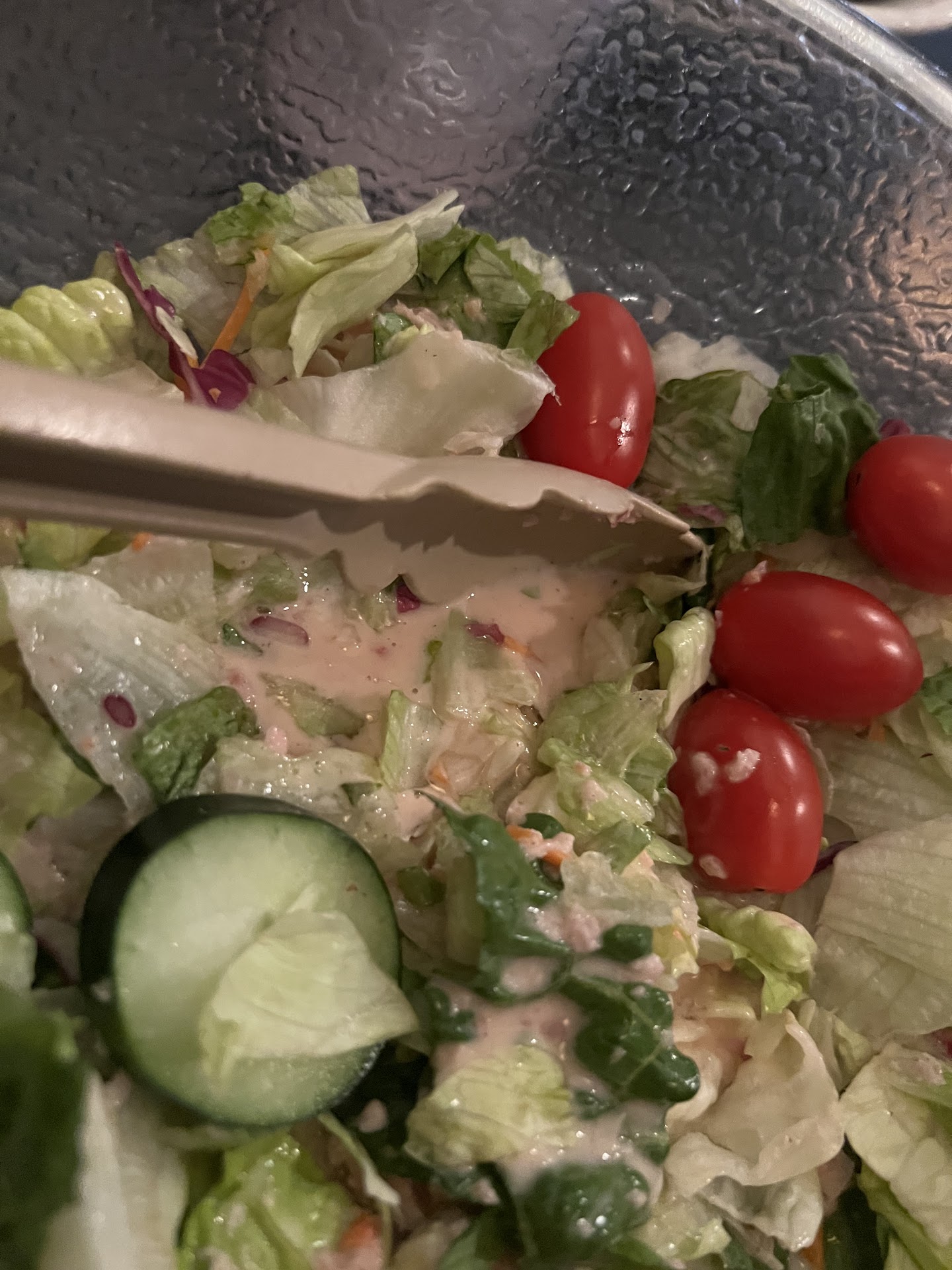 Food Quality was BA - below average. Hard Rolls , Salad is drench in dressing and pork - ham. Why put ham on a salad that is complementary? This is unsatisfying to anyone that really just wants a salad or does not eat pork.