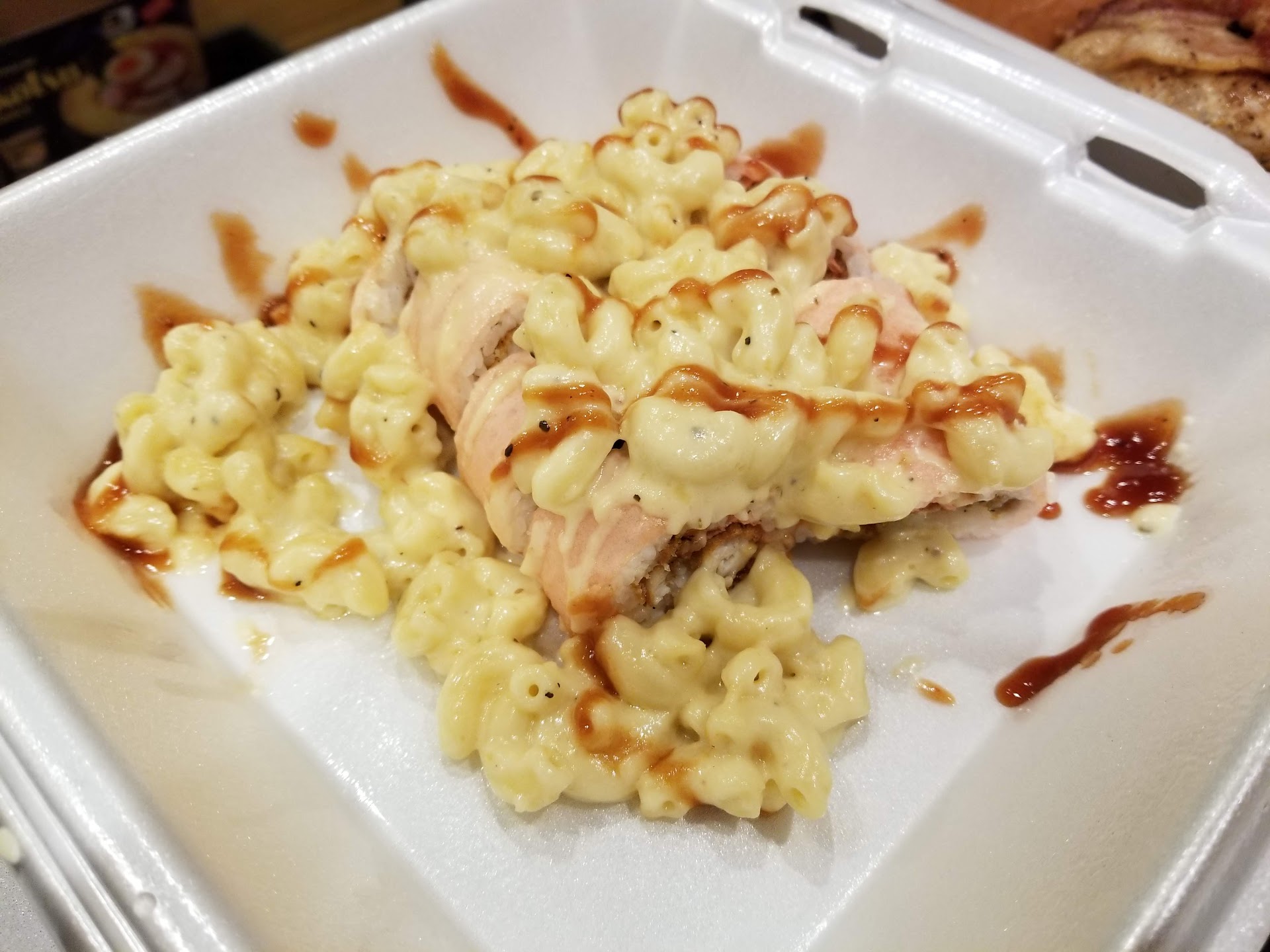 First off, let's talk about the star of the show - the "Fried Chicken Roll" with mac and cheese on top. This innovative creation is a masterpiece of flavors and textures. The crispy fried chicken perfectly complements the creamy mac and cheese, creating a delectable blend of sweet bbq goodness. It's a symphony of flavors that will have your taste buds dancing with joy. This dish alone is worth the visit!