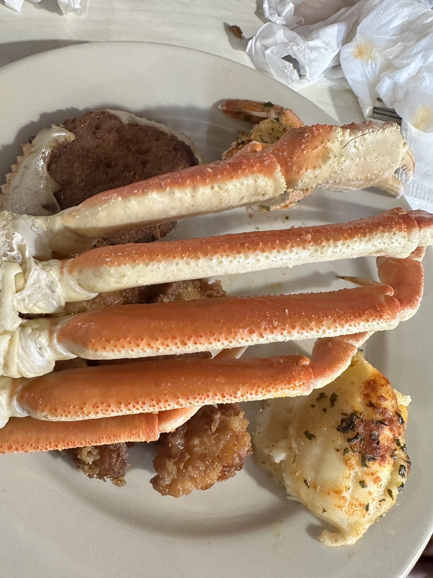 Read moreFor the money paid per person, this place does not offer any where near quality ingredients. Generally, all the cooked food is over cooked and tasteless. A brand new prime rib has just come out, and despite being freshly cooked, was tasteless, rubbery and simply not good. Most of the calabash seafood was rubbery and frankly not good. A few items were decent: the cocktail shrimp and salad bar and to my surprise the ribs. Those were awesome. As for the crab legs, they were ok as long as you drowned them in the liquid butter. Deserts were a bust. We were looking forward to the lemon pie and it was gas station grade. Finally, while cocktails were on, it felt that they only poured half shots of liquor, rendering each beverage weak.